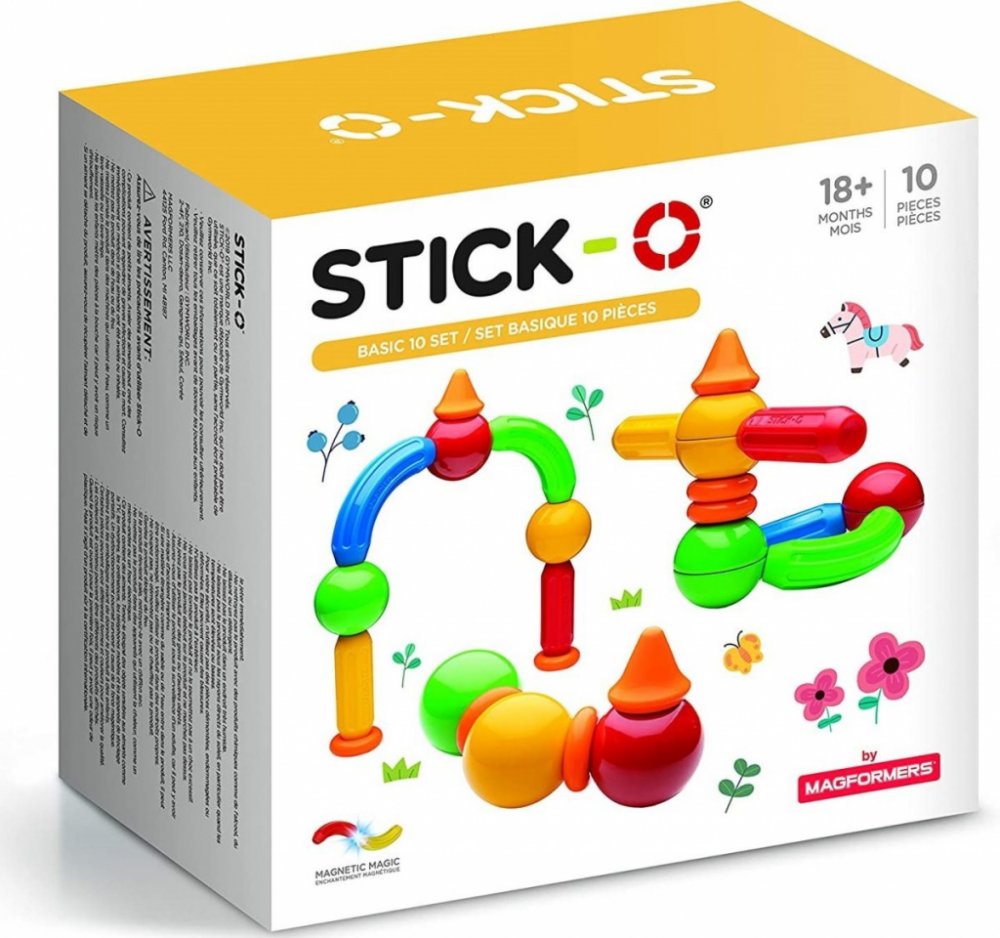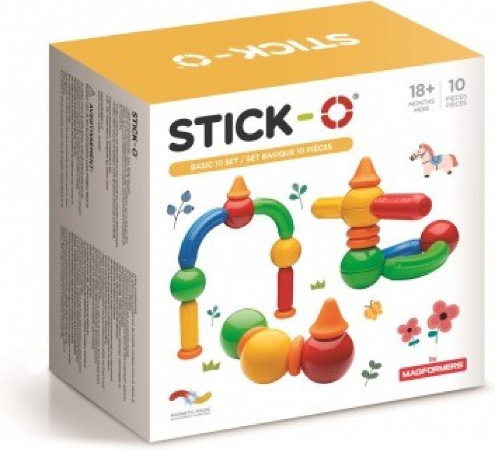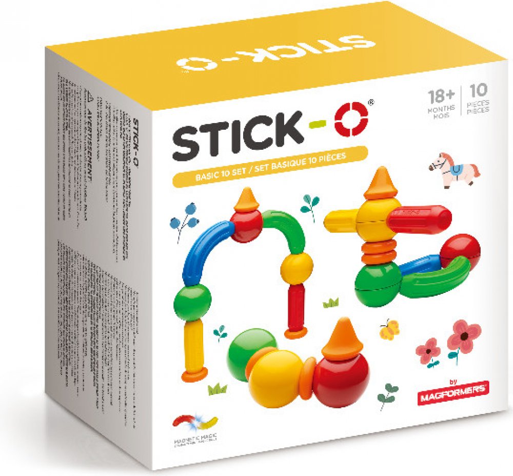 Základní stavebnice Stick-O Basic-10 s 10 jednoduchými tvary ve vyváženém mixu. Vhodné pro první seznámení s tímto zcela novým druhem magnetické stavebnice . Ideální volba pro nejmenší sochaře a modeláře. Dílky oplývají sytými barvami a hlavní důraz je kladen na jejich bezpečnost. Stavebnice je použitelná prakticky bez věkového omezení a díky překvapivé variabilitě si s ní často rádi hrají i starší sourozenci a rodiče. Dílky z této sady lze libovolně kombinovat s