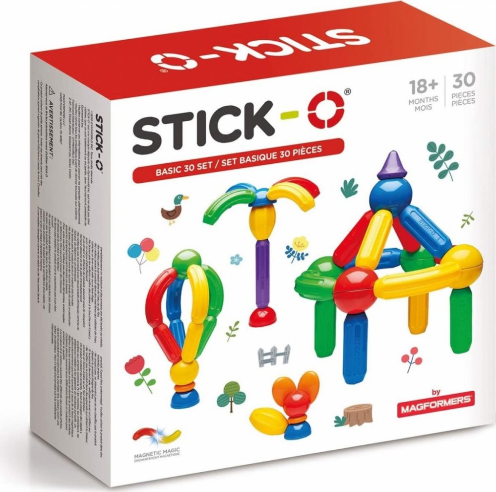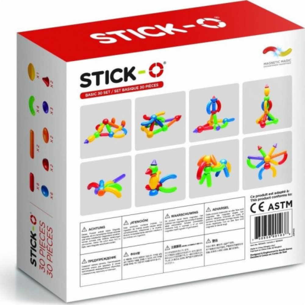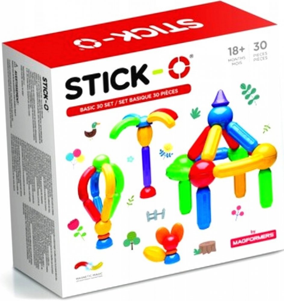 Základní sada obsahující 30 dílků s vysokým podílem tyček a oblouků. Možnost konstruování i větších staveb, popř. více různých modelů najednou. Pro hraní se můžete inspirovat předlohami desítek staveb z přiložené brožurky nebo popustit uzdu fantazii a vrhnout se do vlastních originálních projektů. Výrazného rozšíření kreativního potenciálu docílíte např. přikoupením některé z tematických sad Stick-O. Dílky oplývají sytými barvami a hlavní důraz je kladen na jejich bezpečnost. Stavebnice je použitelná prakticky bez věkového omezení a díky překvapivé variabilitě si s ní často rádi hrají i starší sourozenci a rodiče. Dílky z této sady lze libovolně kombinovat se všemi ostatními stavebnicemi série Stick-O. Rozměry balení: 28 x 28 x 8,5 cm