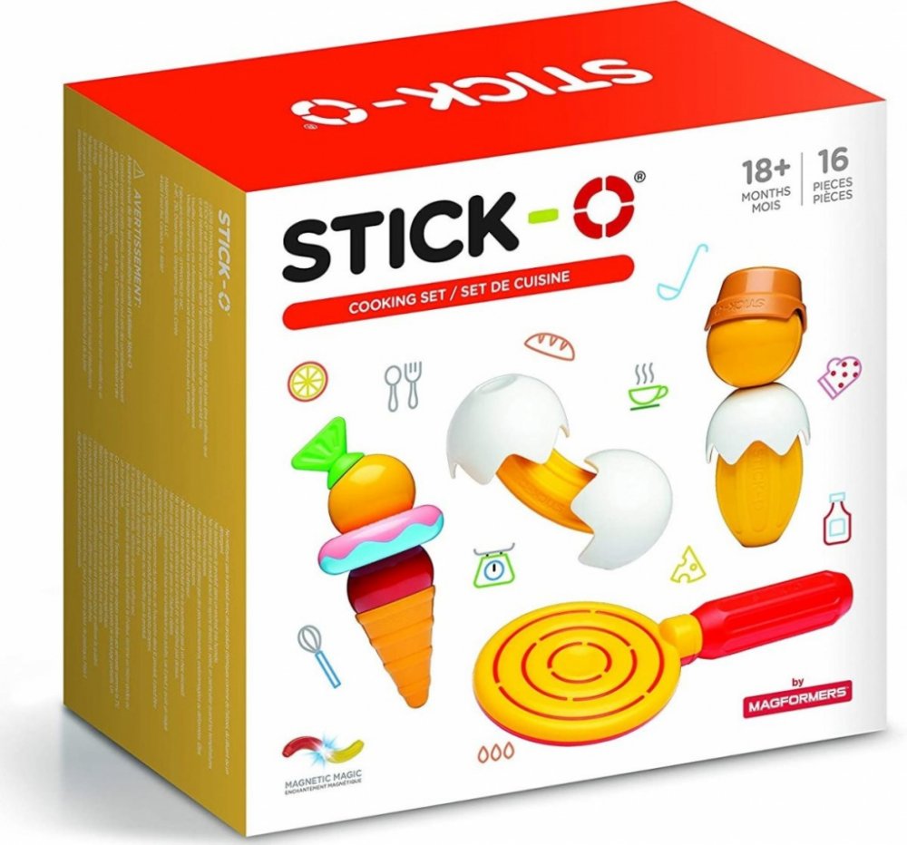 Tematická sada obsahující 16 dílků zaměřených na téma jídla a vaření. Při hraní se můžete inspirovat předlohami roztomilých modelů k nakousnutí z přiložené brožurky nebo popustit uzdu fantazii a vrhnout se do vlastních originálních receptů. Výrazného rozšíření kreativního potenciálu docílíte např. přikoupením některé ze základních sad Stick-O (Basic-10/20/30).