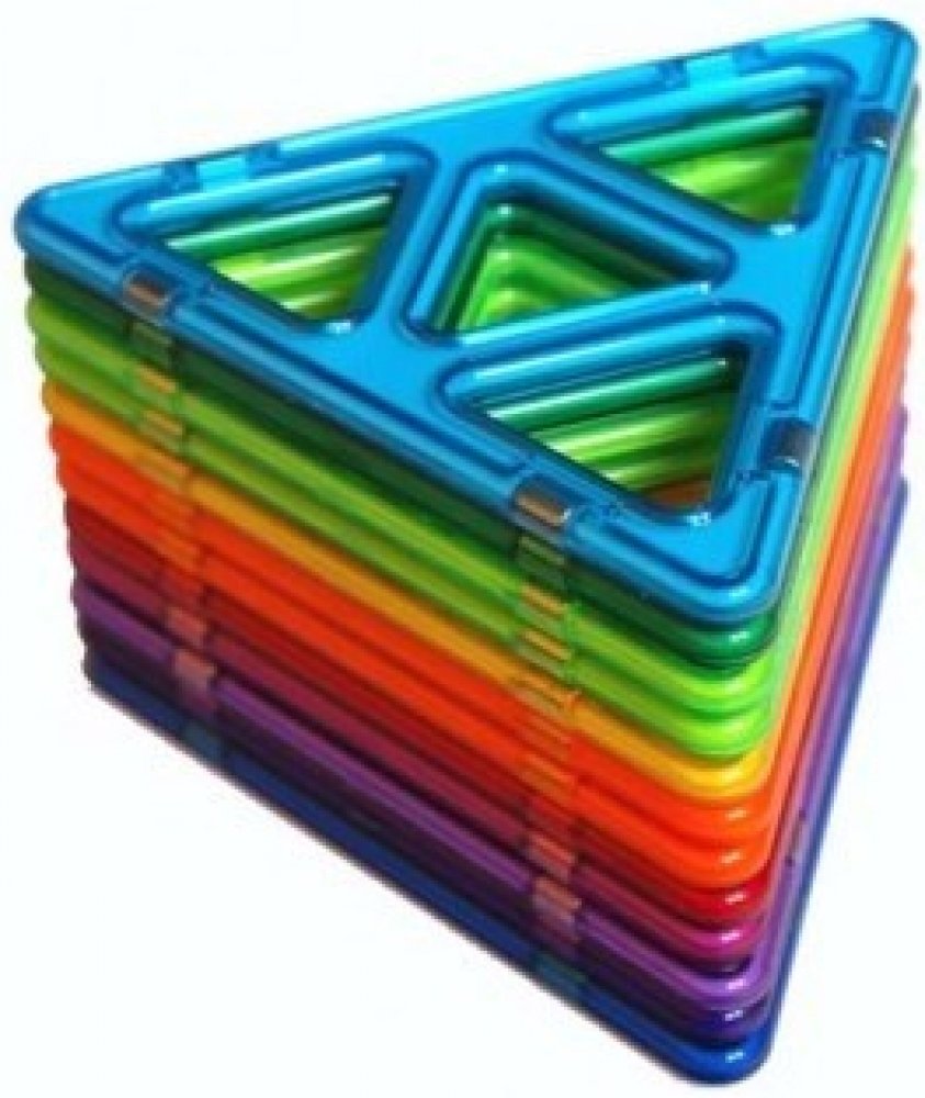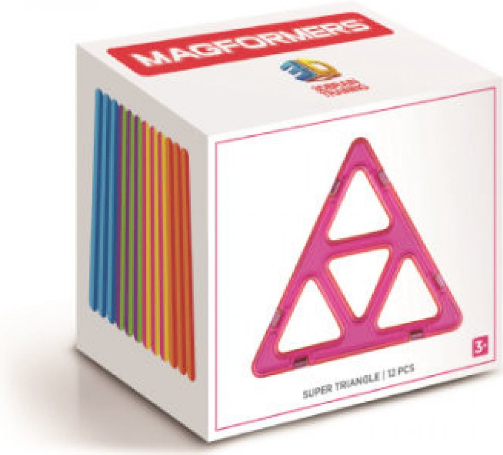Barevné supertrojúhelníky jsou 4x větší, než klasické trojúhelníky. Díky velkým rozměrům můžete snadno a rychle tvořit poměrně objemné stavby. Strana trojúhelníku má 12 cm. Barvy dílků dodáváme dle skladových zásob. Počet dílků: 12 Kreativní magnetická stavebnice Magformers umožňuje sestavovat velké množství trojrozměrných objektů, pomocí dvourozměrných plastových mnohoúhelníků. Magformers procvičuje jemnou motoriku, podněcuje tvořivost, učí děti barvy a základní geometrické tvary. Rozměry dílků a vhodně volené tvary zajišťují maximální možnou bezpečnost hračky. Materiál, z kterého je stavebnice vyrobena splňuje nepřísnější hygienická a zdravotní kritéria. Dílky jsou dostatečně velké, nelze je spolknout a jsou prakticky nerozbitné. MAGFORMERS lze velmi dobře kombinovat i se známou magnetickou stavebnicí Geomag. ilustrační video magnetické stavebnice Magformers
