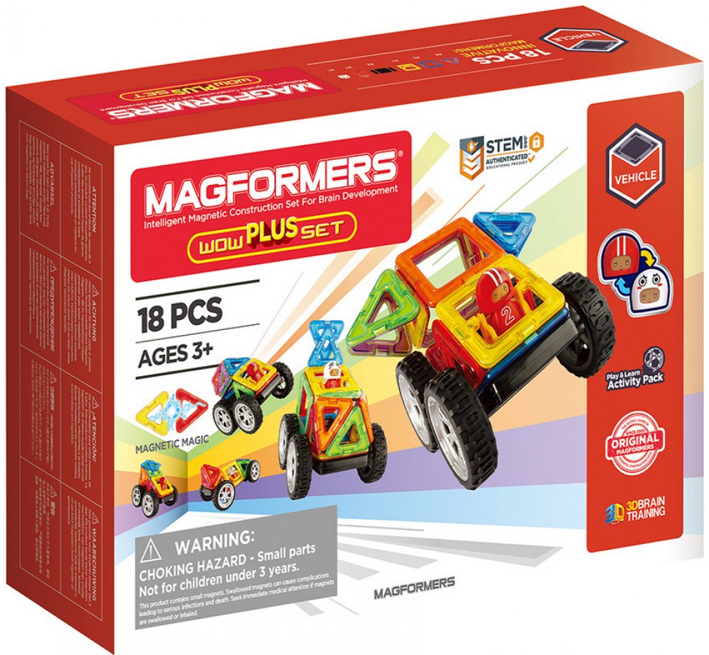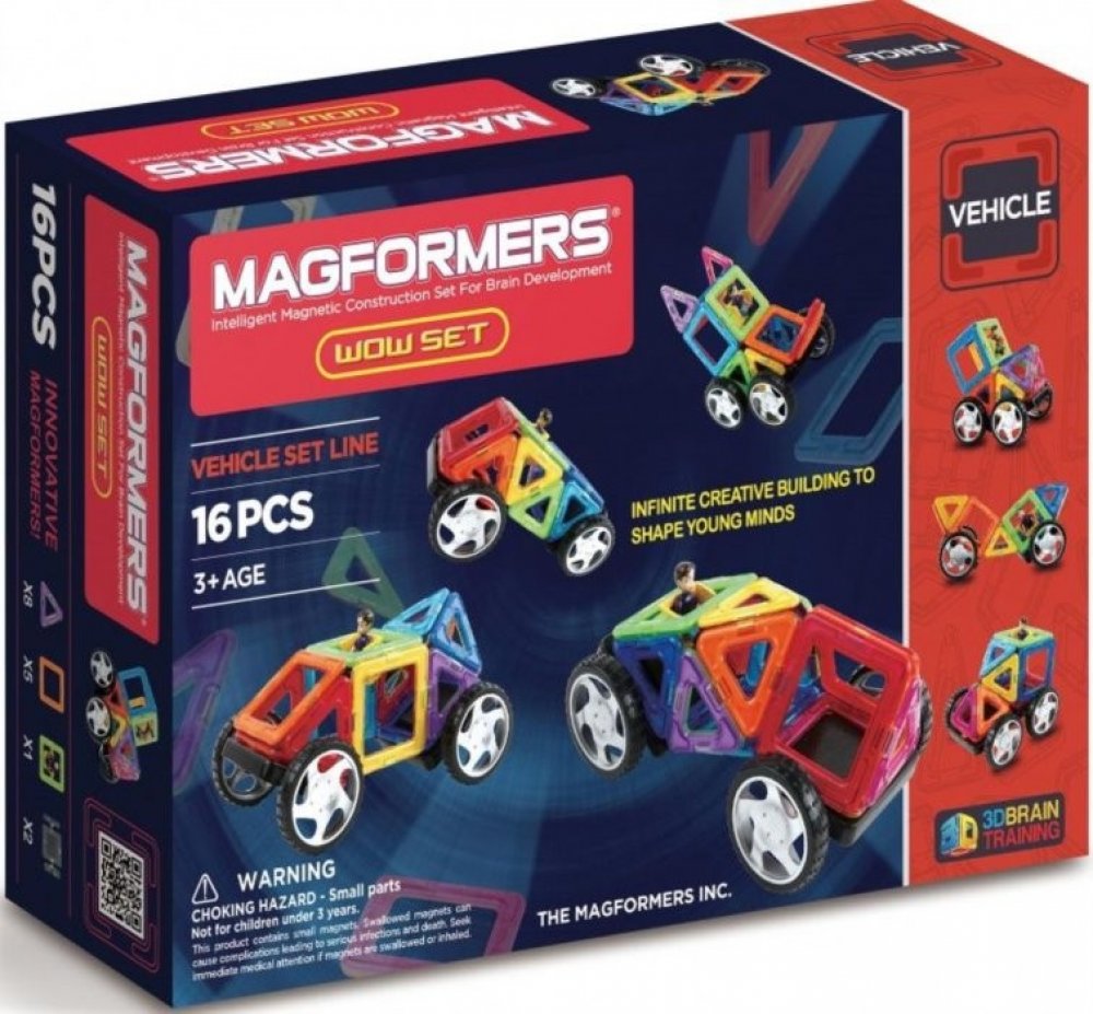 Kreativní magnetická stavebnice Magformers umožňuje sestavovat velké množství trojrozměrných objektů, pomocí dvourozměrných plastových mnohoúhelníků. Magformers procvičuje jemnou motoriku, podněcuje tvořivost, učí děti barvy a základní geometrické tvary. Rozměry dílků a vhodně volené tvary zajišťují maximální možnou bezpečnost hračky. Materiál, z kterého je stavebnice vyrobena splňuje nejpřísnější hygienická a zdravotní kritéria. Dílky jsou dostatečně velké, nelze je spolknout a jsou prakticky nerozbitné.
