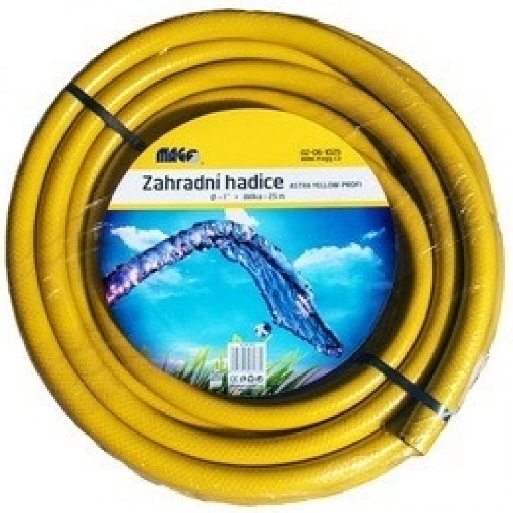 Zahradní hadice ASTRA YELLOW PROFI 34ampquot - 25m PVC hadice s černou vnitřní vrstvou a vnějším pláštěm v barevné kombinaci žluté se zeleným podélným pruhem. Vyztužená vysokopevnostním PES vláknem. Svou konstrukcí je určená pro všeobecné použití. Vzhledem k vyšší tloušťce stěny má výborné mechanické vlastnosti - odolná proti deformaci.