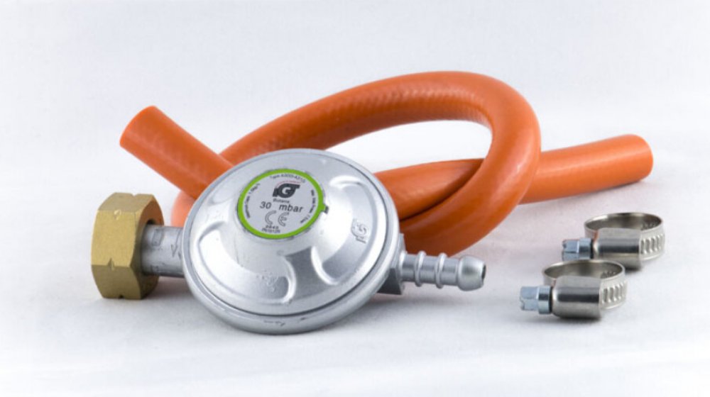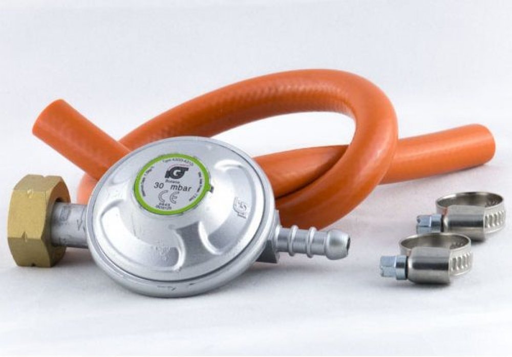 Regulátor 30 mbar a hadice 8mm/50cm se sponami, vhodné k plynovým kamnům MAGG 110003.