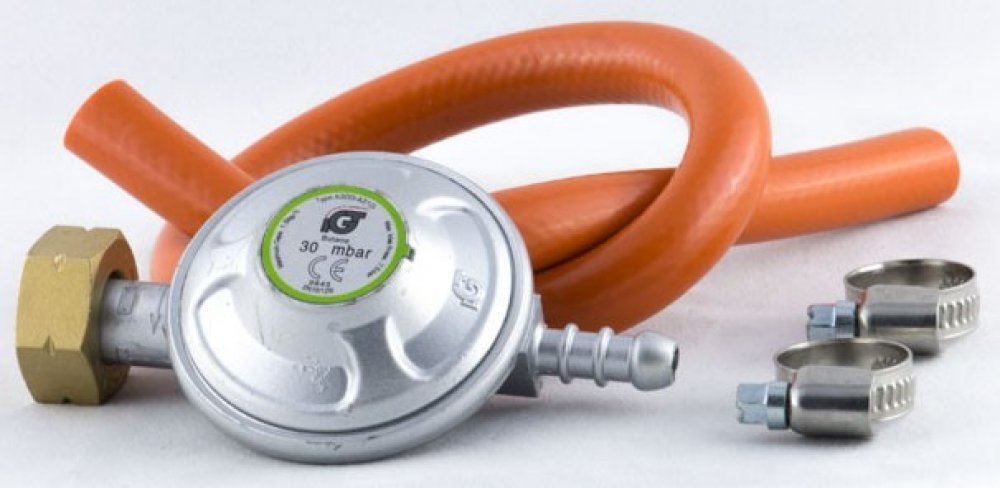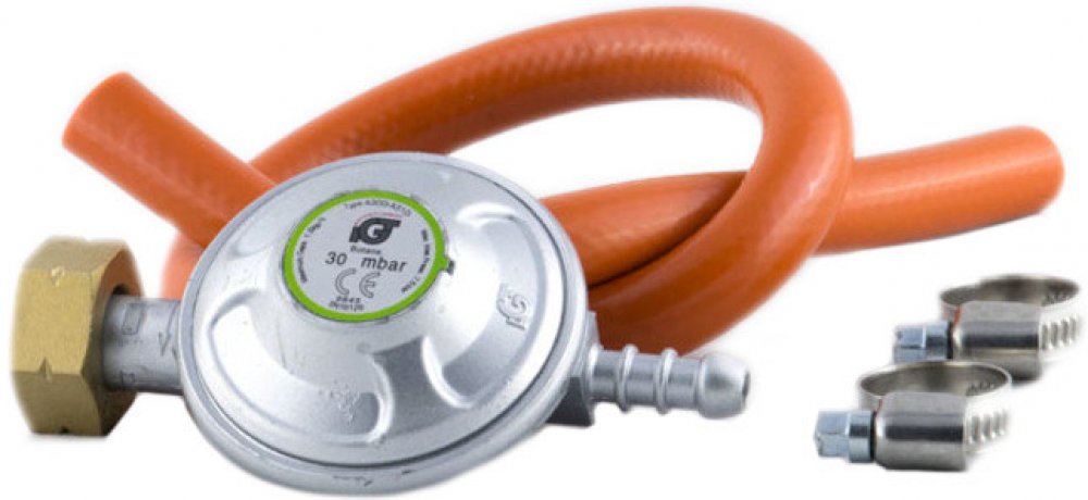 Regulátor 30 mbar a hadice 8mm/50cm se sponami