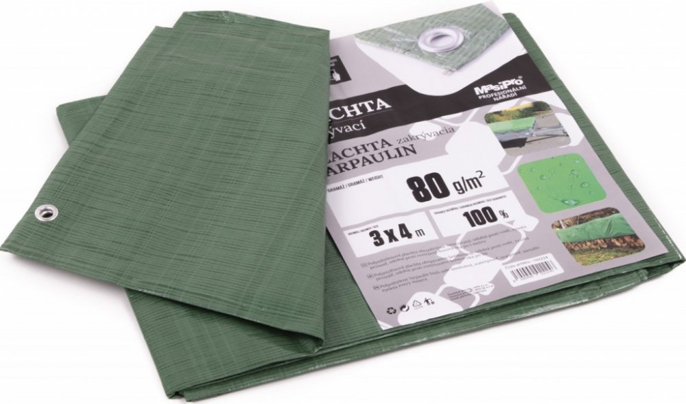 Zakrývací plachta standard 3x4 m, 70 g/m2. Zakrývací plachta MAGG 25012 Je univerzálním pomocníkem pro celoroční použití. Plachtu nejvíce využijete zejména při zakrytí zahradního nábytku, auta, dřeva atd. Prostě vše, co nemá promoknout nebo navlhnout. V hodná ochrana proti dešti a větru. Rozměr: 3x4 m Gramáž: 70 g/m2 Výhody: Univerzální použití