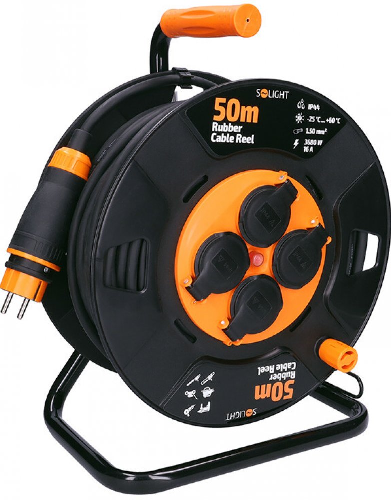 Solight 4 50 m černé na stavbu a do dílny pro domácí spotřebiče IP44 bez USB portů 16.0 A 1.5 mm² kabelový buben s běžným konektorem (Schuko / typ E/F) 3680.0 W