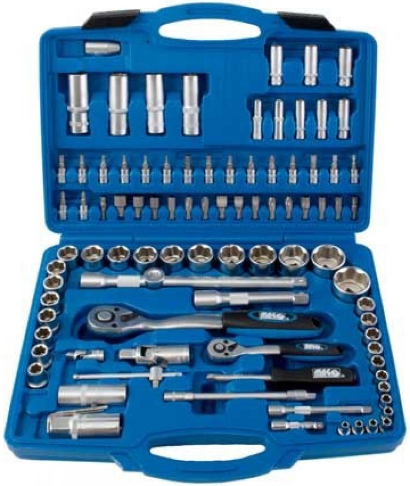 Gola sada s nářadím v metrických rozměrech, vodicí 4hrany 1/4“ a 1/2“, 94 dílů v plastovém kufříku – MAGG 341094PR