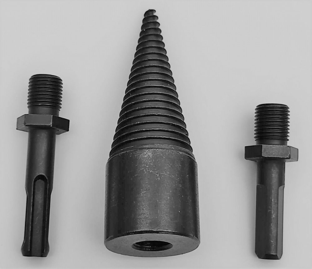 Trn na štípání dřeva, kuželový tvar 32x95 mm, sada s adaptéry do sklíčidla vrtačky SDS+ a 1/2" – MAGG 060023.Používá se k sekání (štípání) dřevěných špalků. Nástavec se pomocí zvoleného adaptéru upevní do sklíčidla a následně se zavrtá do dřeva. To se pak rozpojí – rozštípne.Upozornění: vhodné pro standardní špalky, nehodí se pro extra velké kusy dřeva!