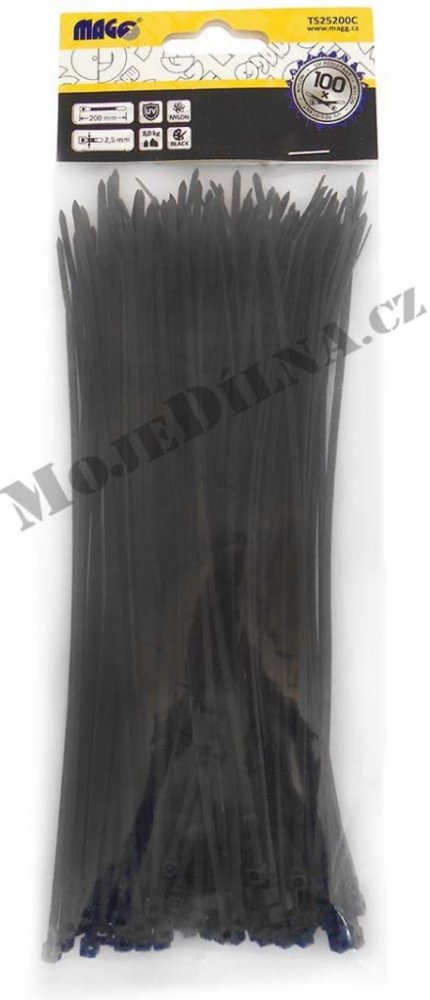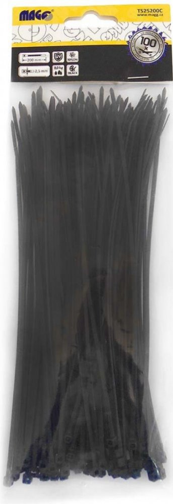 Magg 100 ks černé 200 mm 2.5 mm plast