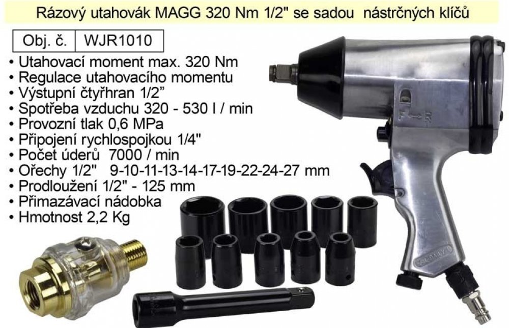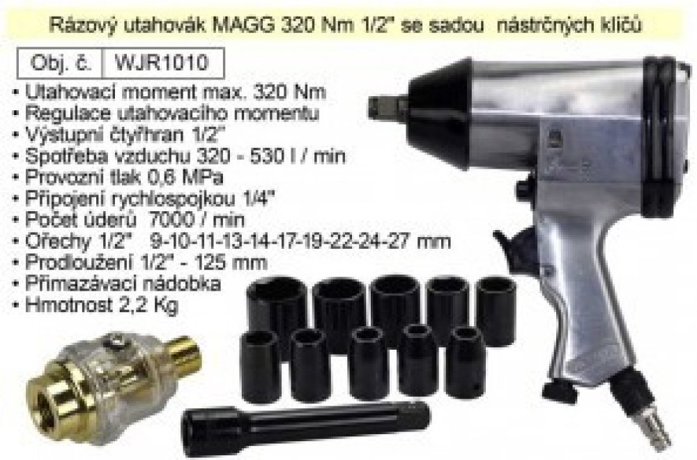 Rázový pneumatický utahovák Magg 320 Nm s výstupním čtyřhranem 1/2" se sadou nástrčných klíčů .