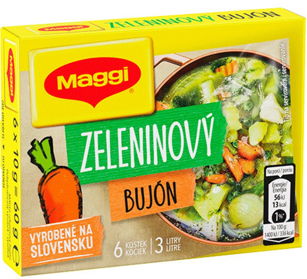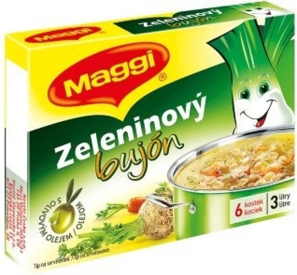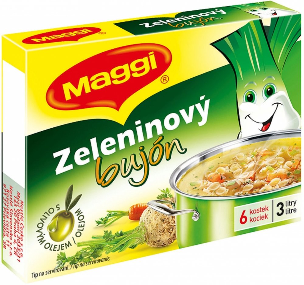 S olivovým olejem, MAGGI Zlatý zeleninový bujón.Dehydratovaný výrobek.Univerzální bujón v kostce. Výrobek je určen k přípravě lahodného bujónu nebo také k dochucení různých zeleninových pokrmů. Velice dobře se dá použít také pro dochucení rýže, těstovin a podobně. Nově obsahuje olivový olej "extra virgin"., www.facebook.com/MaggiCZSKwww.maggi.czwww.nestle.cz, Zeleninový bujón. Dehydratovaný výrobek.,