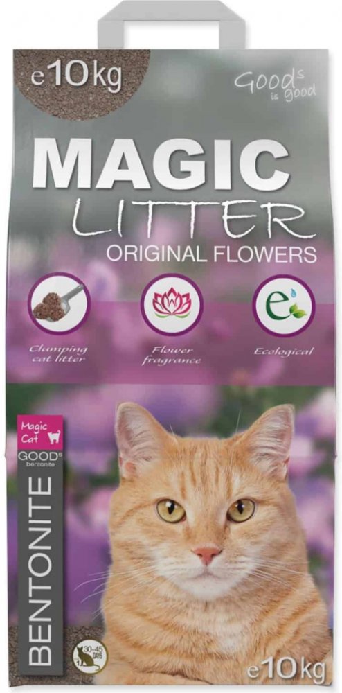 Prémiová řada podestýlek Magic Litter Original Flowers z prvotřídního jemnozrnného jílu, která se řadí mezi přírodní zdroje. Stelivo má příjemnou vůni lučních květin. Vyniká svojí okamžitou nasákavostí a absorpcí zápachu. Stelivo je plně kompostovatelné, tedy nezatěžuje životní prostředí tak, jako jiné formy steliv. Navíc je balen v papírových obalech. Svou strukturou zamezuje zachytávání na tlapkách a tím vynášení zrnek z kočičí toalety. Návod k použití: naplňte čistou prázdnou kočičí toaletu cca 5 cm vrstvou Magic Cat podestýlkou. Pravidelným odstraňováním odpadu lopatkou se udržujte podestýlka čistá. Jednou do měsíce podestýlku kompletně vyměňte.
