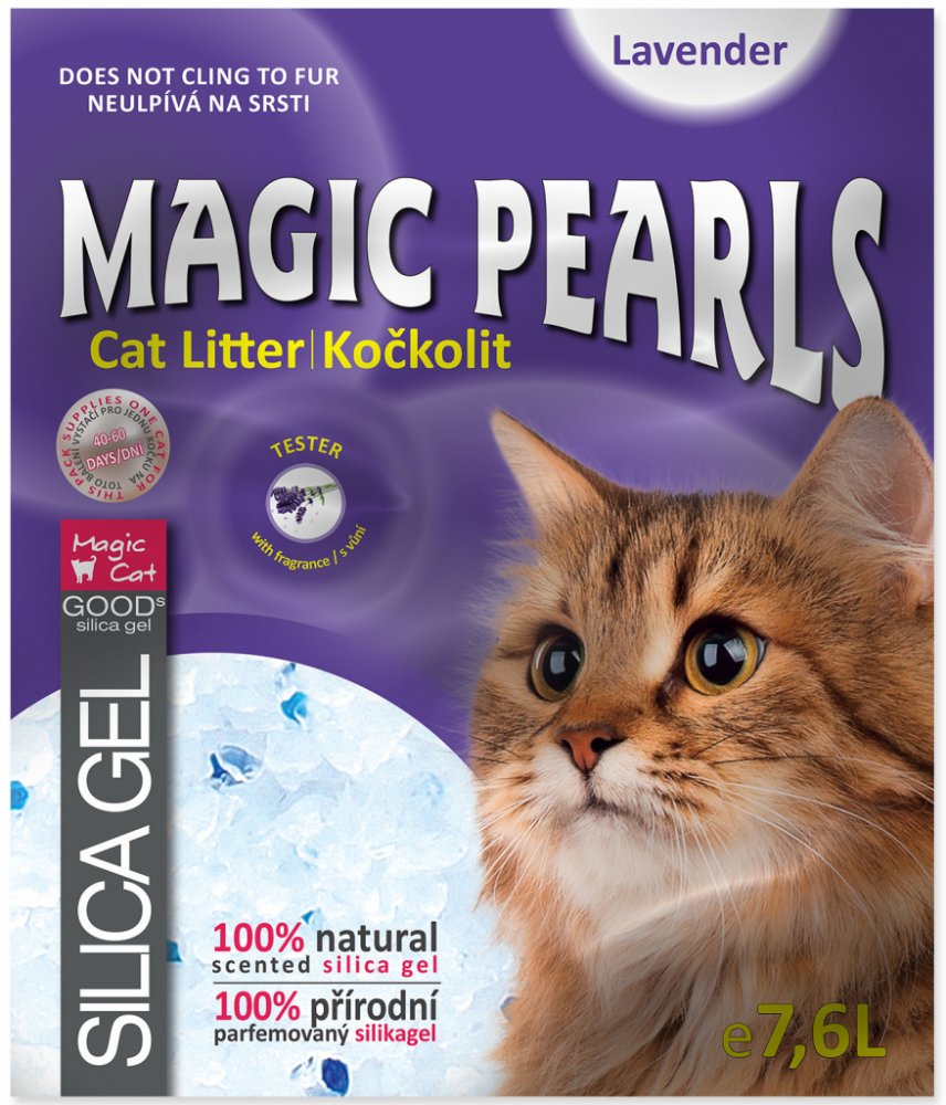 Magic Pearls Lavender je silikátové stelivo pro kočky, které přináší jemnou vůni levandule a revoluční vlastnosti. Díky mikropórům rychle váže tekutiny, uzamkne je uvnitř krystalků, efektivně eliminuje nepříjemný zápach a zabraňuje množení nebezpečných bakterií.