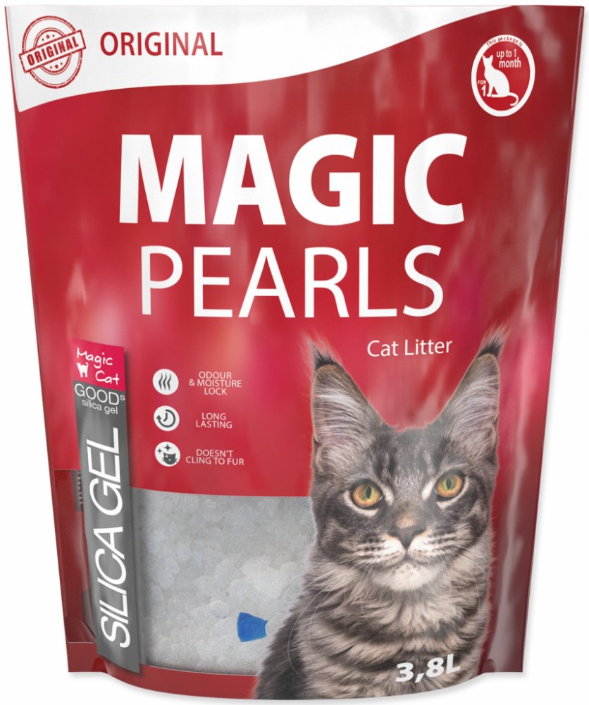 Pouze jeden 7,6 litrový pytel MAGIC Pearls vydrží vaší kočce 8 týdnů. S jinými podestýlkami musíte použít takové množství čtyřikrát.