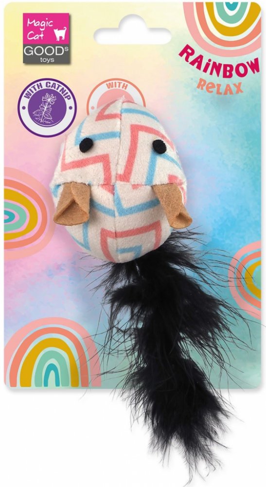 Magic Cat Rainbow Relax myš s pírkem a šantou 5,5 cm