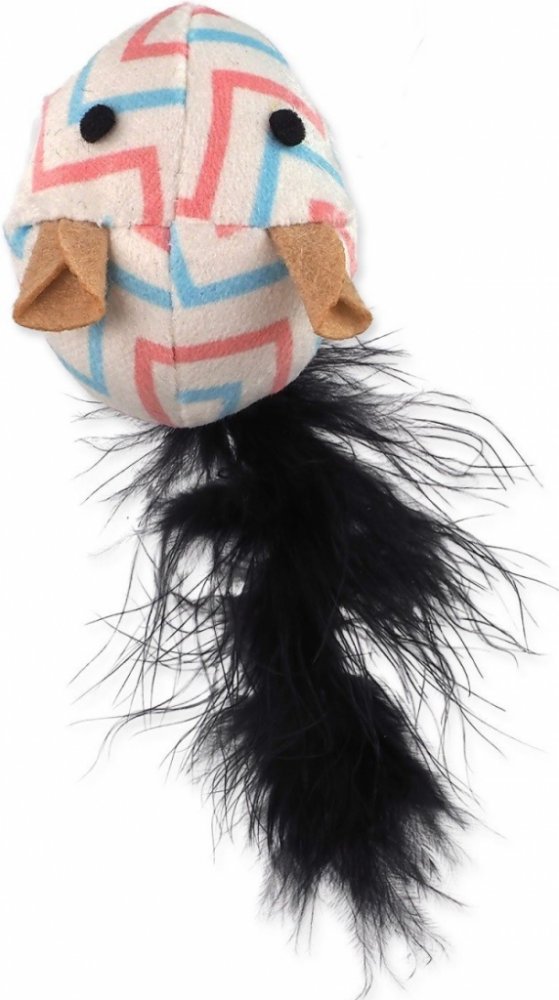 Lákavá hračka v podobě myši s pírkem a šantou kočičí.