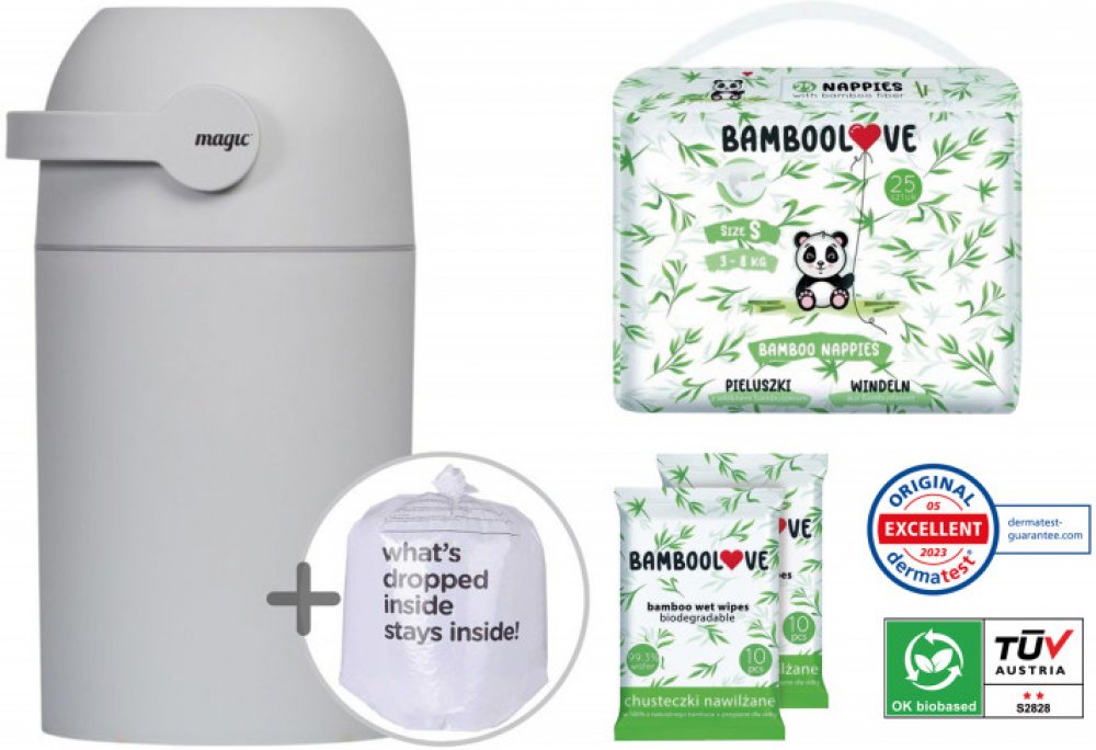 Patentovaný koš na pleny Magic poskytuje ochranu před nepříjemnými pachy a bakteriemi v dětském pokoji nebo kdekoli ve vašem interiéru.