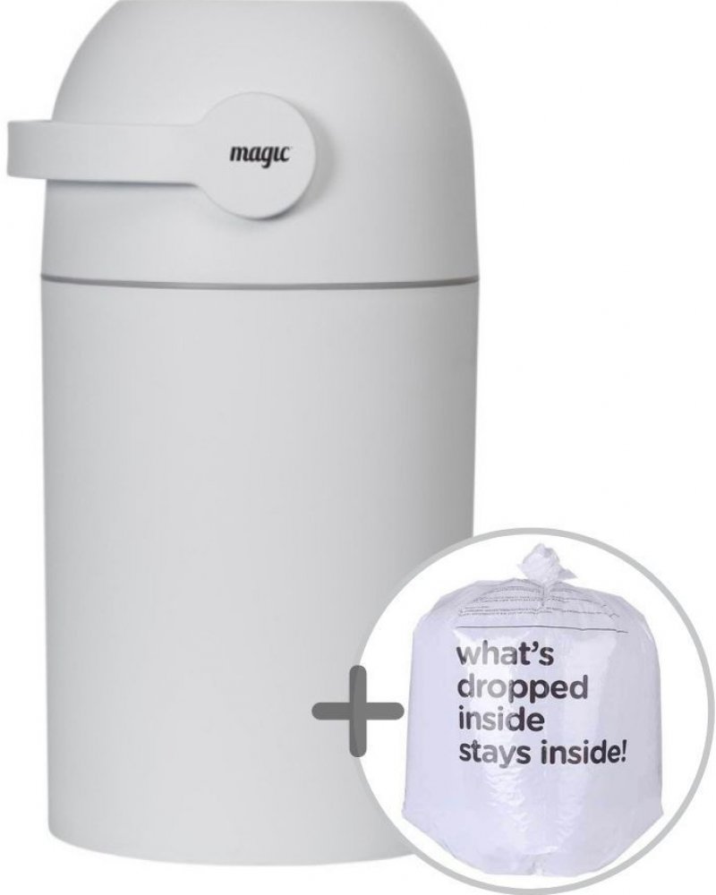 Patentovaný koš na pleny Magic poskytuje ochranu před nepříjemnými pachy a bakteriemi v dětském pokoji nebo kdekoli ve vašem interiéru. Použitou plenu snadno vložíte do koše bez jakéhokoli kontaktu s plenkami, které již v koši jsou. Otočením držadla plena propadne do koše a jeho otočením zpátky je koš opět připraven pro další použití. To vše jednou rukou, takže druhou můžete držet vaše miminko. Sp...