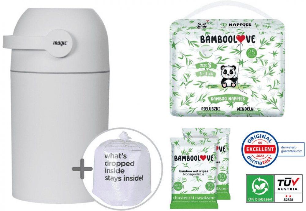 Použití koše je velmi ekonomické, protože nevyžaduje nákup speciálních náplní. Koš je určen pro použití s běžnými sáčky na odpadky. Pro maximální ochranu před zápachem doporučujeme použití originálních sáčků navržených do košů na pleny Magic. Tyto sáčky jsou vyrobeny z extra silného, 3-vrstvého materiálu, který brání protékání. Samostatně prodávané balení obsahuje 45 ks sáčků (3 role / 15ks) z recyklovaného materiálu.
