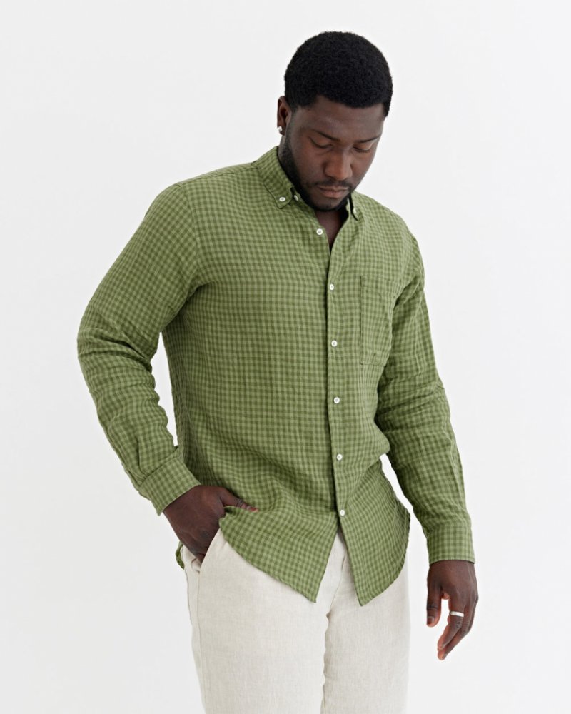 Pánská lněná košile PERUGIA v mono zeleném ginghamovém vzoru