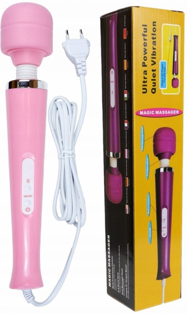 Magic Massager Wand Cable Pink moderní masér s klasickým designem - perfektní erotický gadget pro dárek pro partnera nebo pro sebe. Je to nenahraditelná pomůcka na relaxační masáž celého těla, která vám umožní zcela odpočívat a relaxovat. Zároveň je perfektní jako erotická hračka během předehry, masturbace a pohlavního styku. Masér je vybaven hlavou, která se ohýbá pod tlakem, a ergonomickou rukoj...