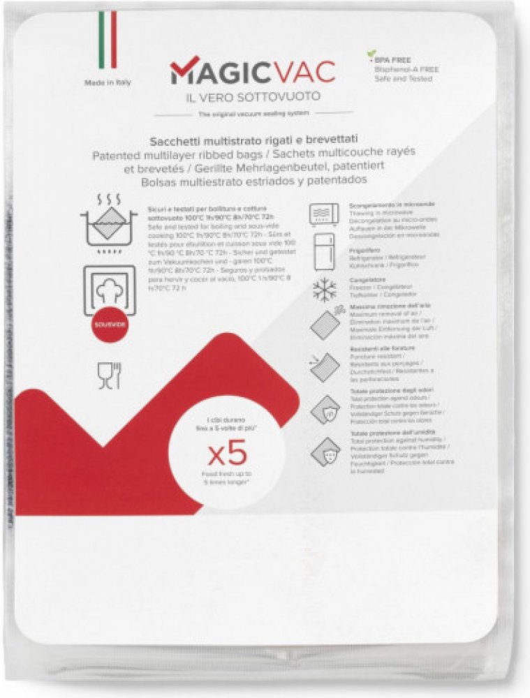 Vakuovací sáčky a rolky Magic Vac mají silné drážkování, které umožňuje dokonalé odsátí vzduchu a vytvoření vzduchotěsného spoje.