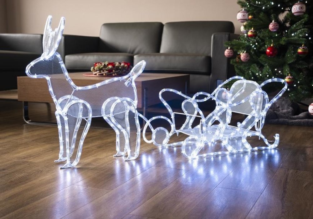 MagicHome Dekorace Vánoce Sob se saněmi 312 LED studená bílá 230V 50 Hz exteriér