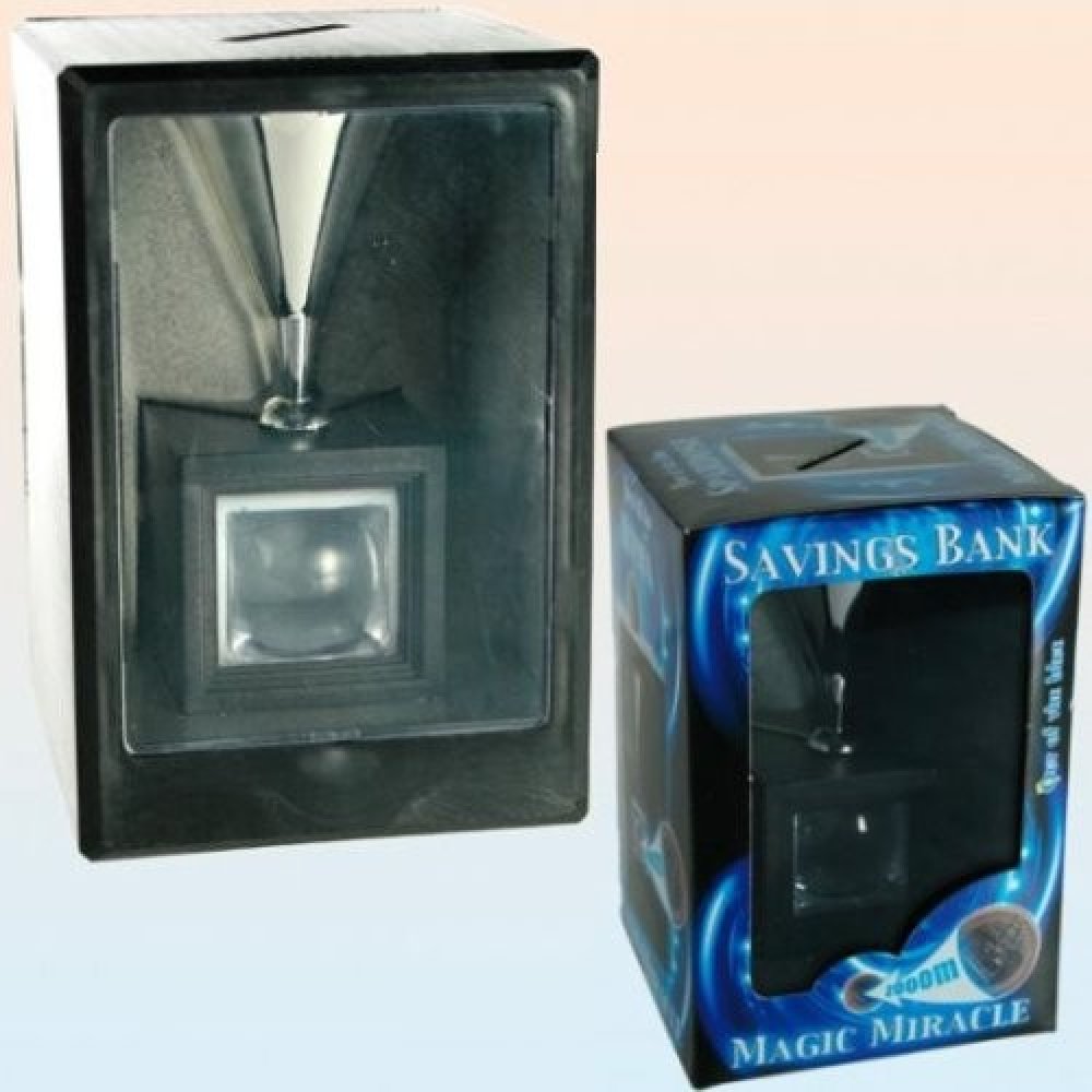 Vhoďte minci a sledujte co se stane. Nejdříve mince proklouzne trychtýřem menším než ona sama aby se následně zmenšila a objevila se dole v malém sejfu. MICROBANK je další z řady “kouzelných” kasiček.