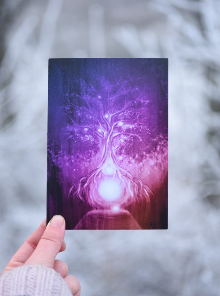 Obrázek jsem vytvořila z prolnutí fotografií obrazů, kde je základem strom života Oblíku. Výsledný obraz vytváří příjemnou kouzelnou atmosféru. Jako byste se procházeli hlubokým lesem, který světélkuje a uprostřed něho stál strom zázračné magické síly.