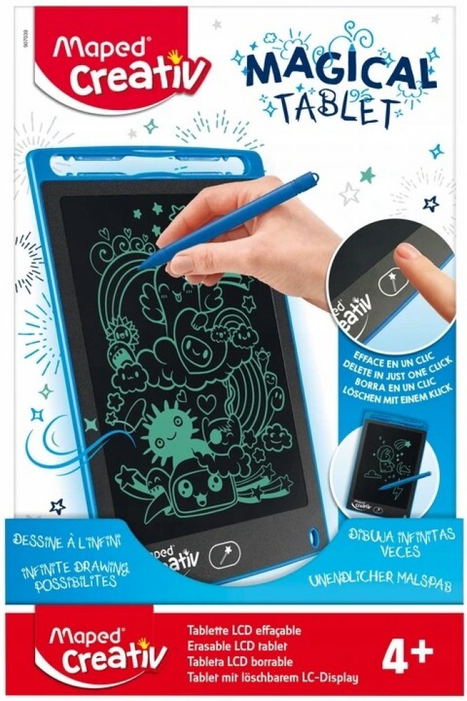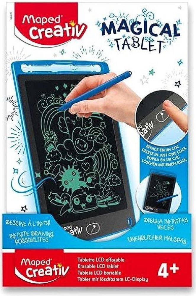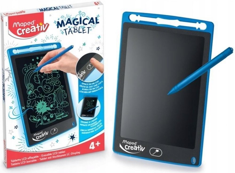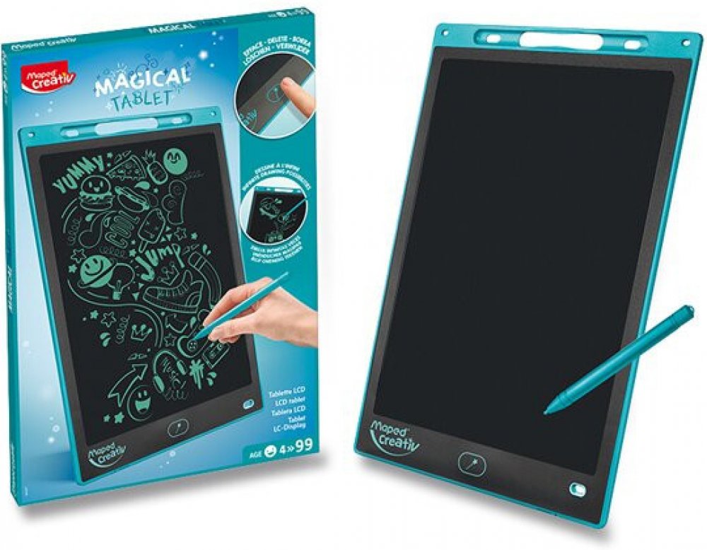 Magický kreslící tablet Maxi s LCD obrazovkou přestavuje zábavu nezávislou na elektrické energii a připojení k wifi. Už není potřeba papír ani tužka, děti mohou kreslit, kde chtějí a kdy chtějí. Doma, v autě, na dovolené, zkrátka si mohou vzít svůj tablet kamkoliv je napadne. Lze ho použít i jako tabulku na rodinné vzkazy.