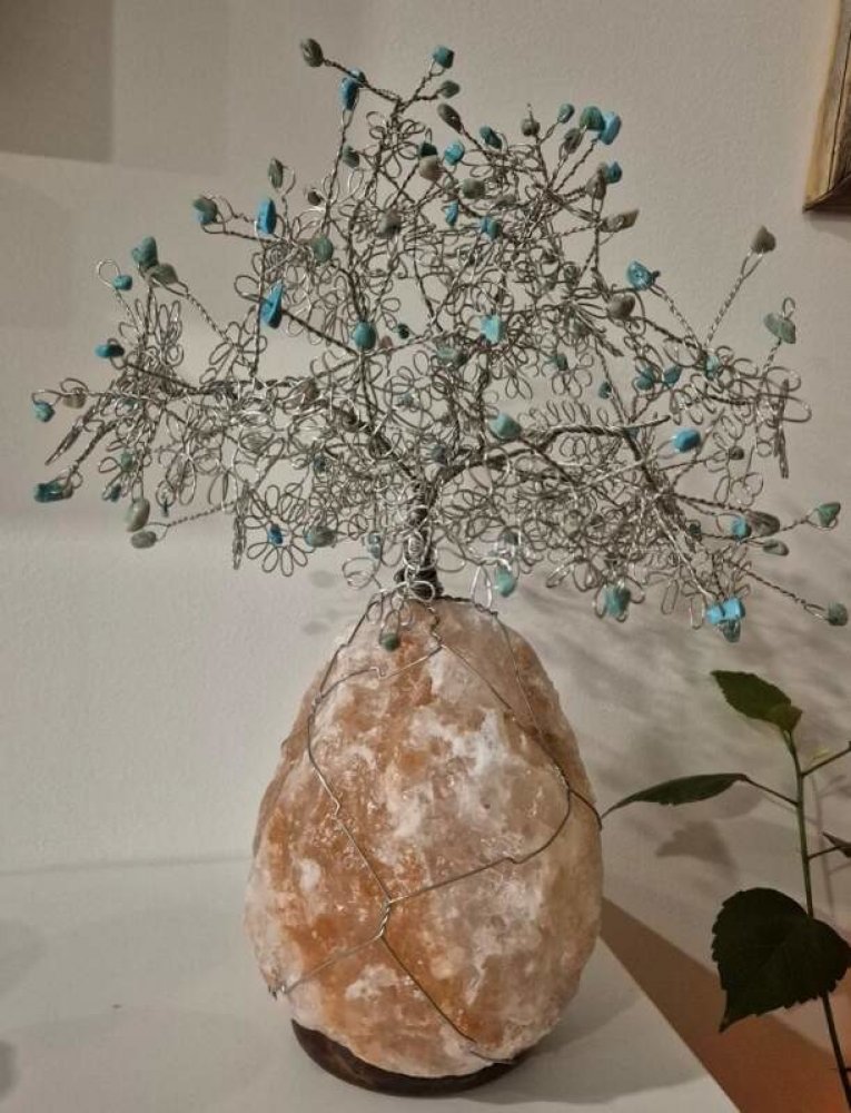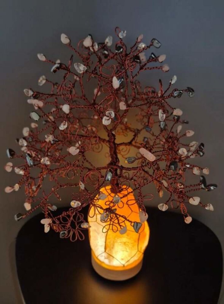 SOLNÁ Lampa LED na USB nebo na baterie 3x AAA -Strom Života a Štěstí z minerálů - např. Ochrana domova - Záhněda,Ametyst,Křišťál, Obsidián.Lampa je na 3xAAA baterie nebo na USB - DO POZNÁMKY NAPSAT BATERIE NEBO USB!!!.min. výška 30 cm včetně solné lampy.