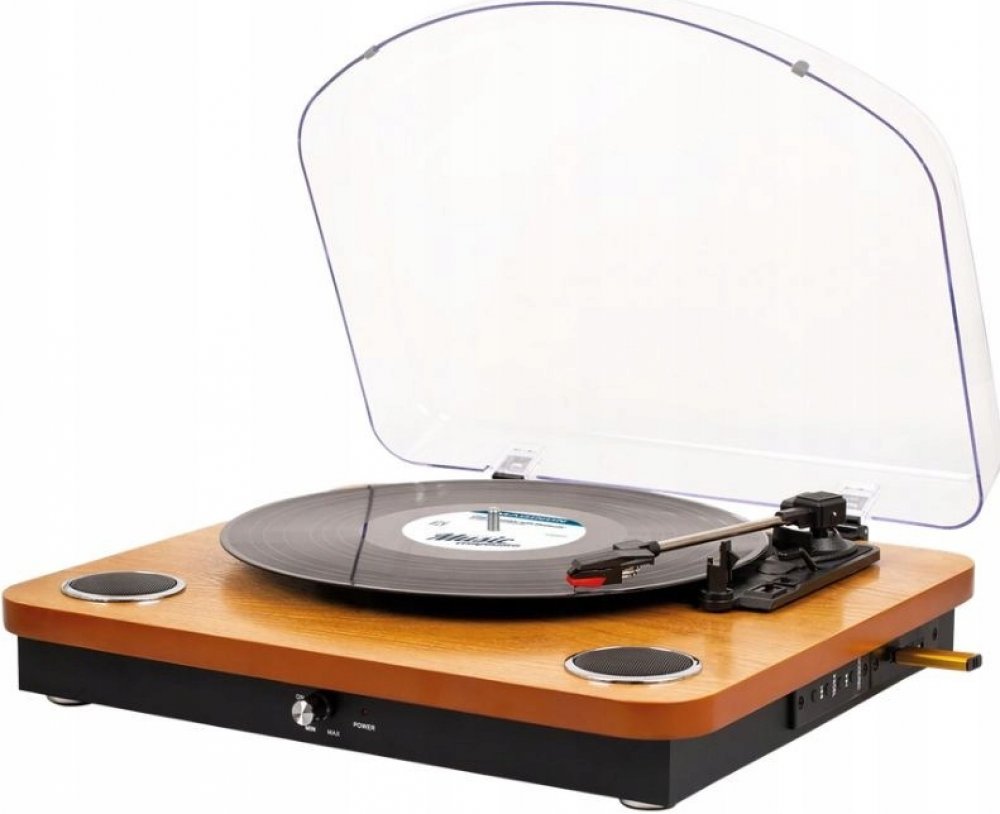 - Přenosná konstrukce s vestavěnými reproduktory umožňuje bezproblémovou přepravu a skladování gramofonu