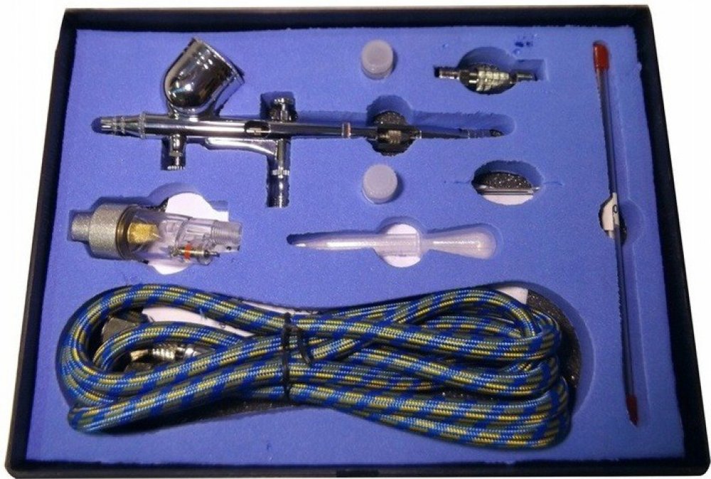 Profesionální airbrush pistoli s tryskami 0,2 0,3 0,5mm. Tělo pistole je vyrobeno výhradně z kovu, díky čemuž je pistole odolnější vůči mechanickému poškodeniu. Jedná se o dual-funkční Airbrush, což znamená, že obě tlačítka pro nastavení hlasitosti přiváděného vzduchu (se pohybuje nahoru a dolů), stejně jako množství laku (se pohybuje dopředu a dozadu). Celokovové tělo se dobře drží v ruce a je také poměrně snadné na údržbu.