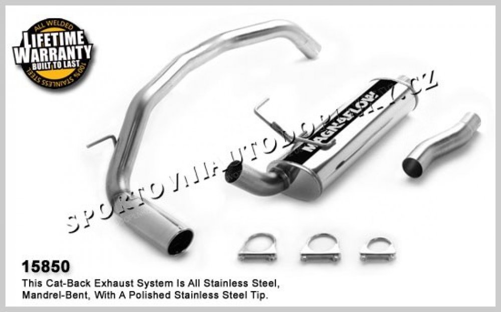 Sportovní výfukové systémy kultovní americké firmy Magnaflow patří spolu s Borlou mezi absolutní špičku ve výrobě sportovních výfuků hlavně v USA. Sportovní konstrukce v nerez provedení s leštěnými koncovkami je přesně stavěna pro daný model auta pro maximální možné navýšení výkonu. Přední úpravci často volí tuto značku jako záruku vysoké kvality, funkčnosti i nádherného zvuku. Naše firma je přímo autorizovaným prodejcem těchto výfuků pro ČR a proto vám můžeme poskytnout plnou záruku a maximální pomoc při výběru správného výfuku,  Některé výfuky držíme přímo skladem a je možné je vidět na naší prodejně v Ostravě. Pokud daný výfuk je skladem v Evropě, u nás jej máme do 10 dnů, pokud je výfuk jen v USA, doba dodání kontejnerem je 2-3 měsíce, letecky 10-14 dnů s  přirážkou od 6000,- Kč bez DPH podle velikosti a váhy výfuku. Nahoře vedle hlavní fotky najdete v souborech často montážní listy, fotky i videa daného modelu auta.