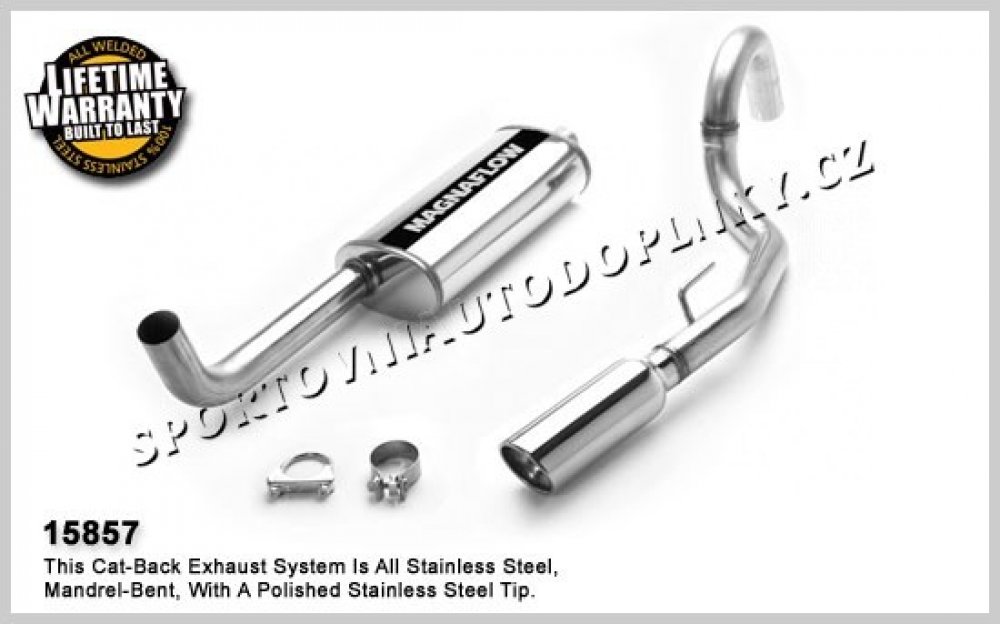 Sportovní výfukové systémy kultovní americké firmy Magnaflow patří spolu s Borlou mezi absolutní špičku ve výrobě sportovních výfuků hlavně v USA. Sportovní konstrukce v nerez provedení s leštěnými koncovkami je přesně stavěna pro daný model auta pro maximální možné navýšení výkonu. Přední úpravci často volí tuto značku jako záruku vysoké kvality, funkčnosti i nádherného zvuku. Naše firma je přímo autorizovaným prodejcem těchto výfuků pro ČR a proto vám můžeme poskytnout plnou záruku a maximální pomoc při výběru správného výfuku,  Některé výfuky držíme přímo skladem a je možné je vidět na naší prodejně v Ostravě. Pokud daný výfuk je skladem v Evropě, u nás jej máme do 10 dnů, pokud je výfuk jen v USA, doba dodání kontejnerem je 2-3 měsíce, letecky 10-14 dnů s  přirážkou od 6000,- Kč bez DPH podle velikosti a váhy výfuku. Nahoře vedle hlavní fotky najdete v souborech často montážní listy, fotky i videa daného modelu auta.