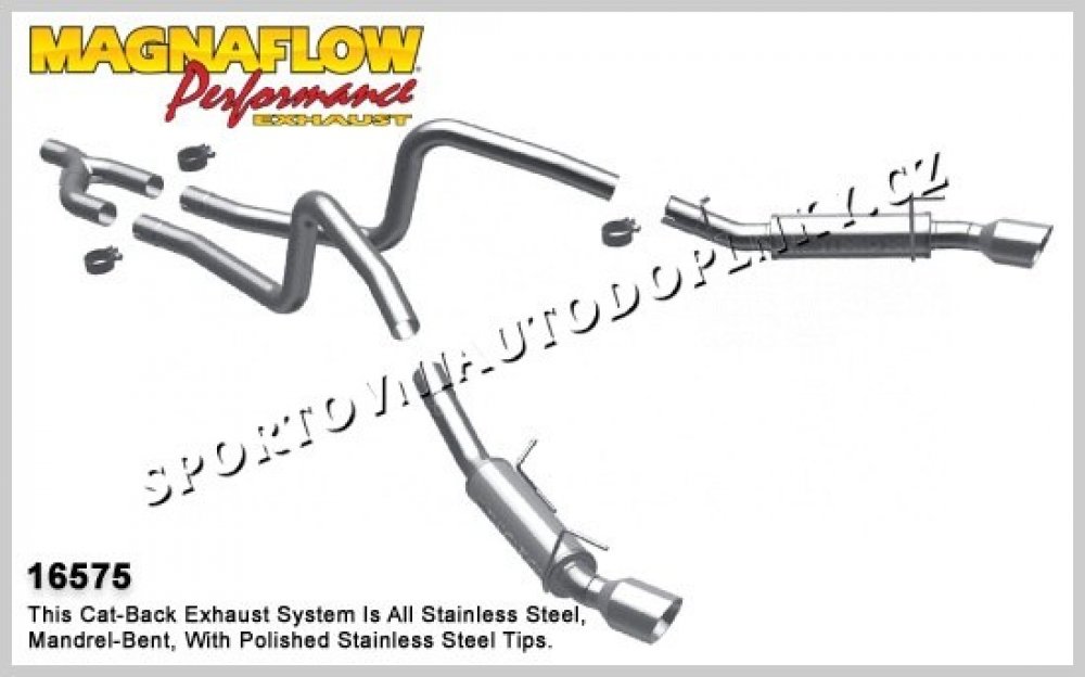 Sportovní výfukové systémy kultovní americké firmy Magnaflow patří spolu s Borlou mezi absolutní špičku ve výrobě sportovních výfuků hlavně v USA. Sportovní konstrukce v nerez provedení s leštěnými koncovkami je přesně stavěna pro daný model auta pro maximální možné navýšení výkonu. Přední úpravci často volí tuto značku jako záruku vysoké kvality, funkčnosti i nádherného zvuku. Naše firma je přímo autorizovaným prodejcem těchto výfuků pro ČR a proto vám můžeme poskytnout plnou záruku a maximální pomoc při výběru správného výfuku,  Některé výfuky držíme přímo skladem a je možné je vidět na naší prodejně v Ostravě. Pokud daný výfuk je skladem v Evropě, u nás jej máme do 10 dnů, pokud je výfuk jen v USA, doba dodání kontejnerem je 2-3 měsíce, letecky 10-14 dnů s  přirážkou od 6000,- Kč bez DPH podle velikosti a váhy výfuku. Nahoře vedle hlavní fotky najdete v souborech často montážní listy, fotky i videa daného modelu auta.