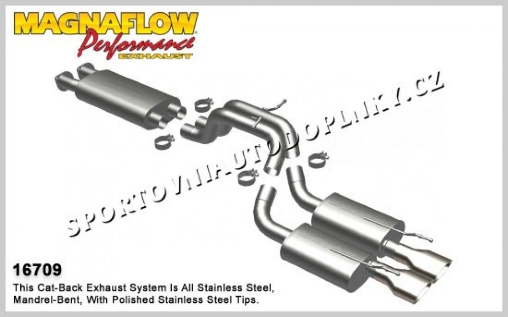 Sportovní výfukové systémy kultovní americké firmy Magnaflow patří spolu s Borlou mezi absolutní špičku ve výrobě sportovních výfuků hlavně v USA. Sportovní konstrukce v nerez provedení s leštěnými koncovkami je přesně stavěna pro daný model auta pro maximální možné navýšení výkonu. Přední úpravci č
