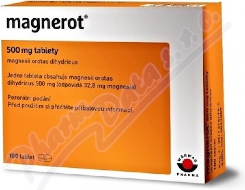 Jedna tableta obsahuje magnesii orotas dihydricus 500 mg (odpovídá 32,8 mg magnesia)