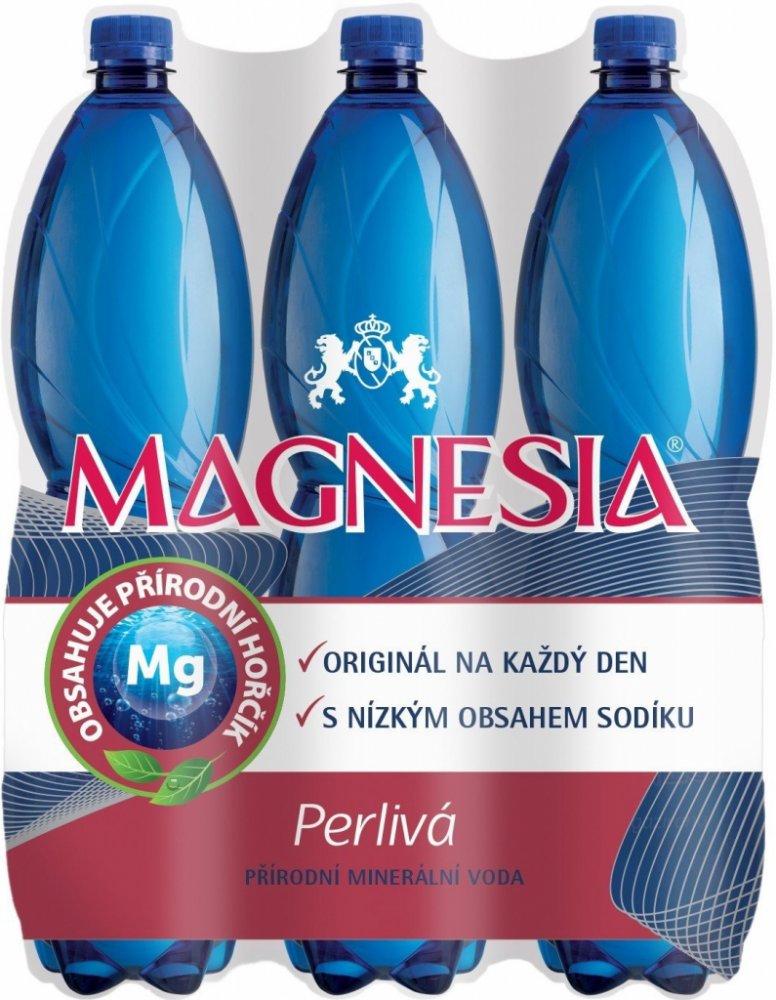 Minerální perlivá voda. Magnesia je přírodní středně mineralizovaná voda se značným obsahem hořčíku a nízkým obsahem sodíku. Pramení ve Slavkovském lese a čerpá se z přírodního zdroje z hloubky 100 m. Je vhodná k pravidelné konzumaci bez omezení. Doplňujete hořčík, aniž byste zatěžovali organismus přebytkem sodíku.