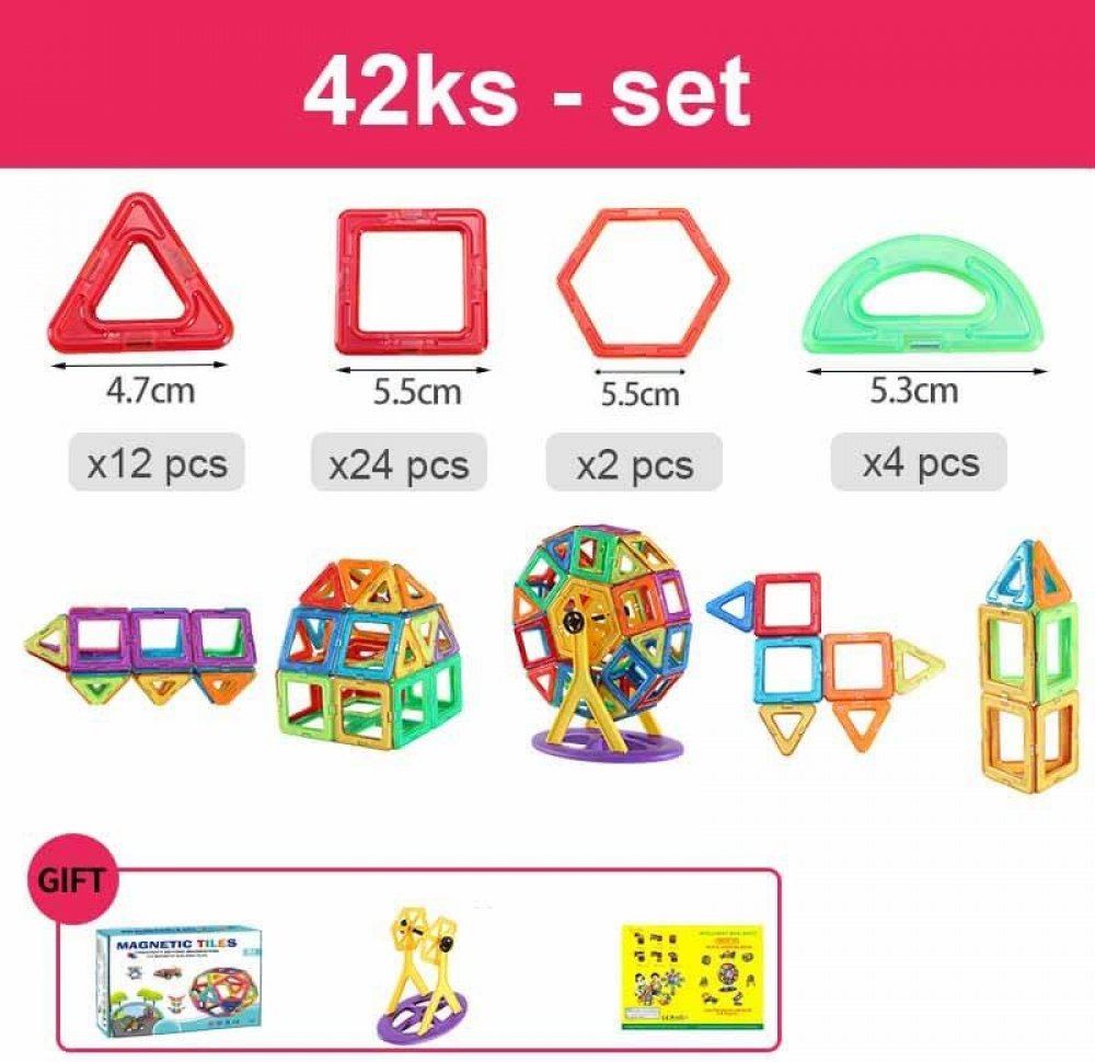 Magnetická stavebnice 42ks - Magnetické dlaždice: Série dutých kostek Objevte nekonečné možnosti kreativity a zábavy s naší magnetickou stavebnicí Magnetické dlaždice - Série dutých kostek! Představujeme vám revoluční hračku, která vaše děti nejen zabaví na dlouhé hodiny, ale také podpoří jejich intelektuální a kreativní rozvoj. Naše magnetická stavebnice Magnetic Tiles je ideální pomůckou pro vše...