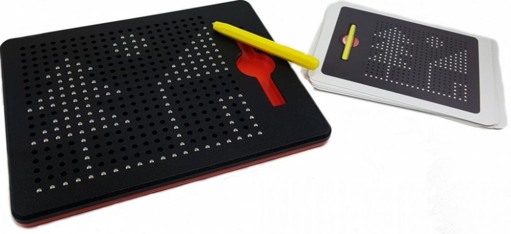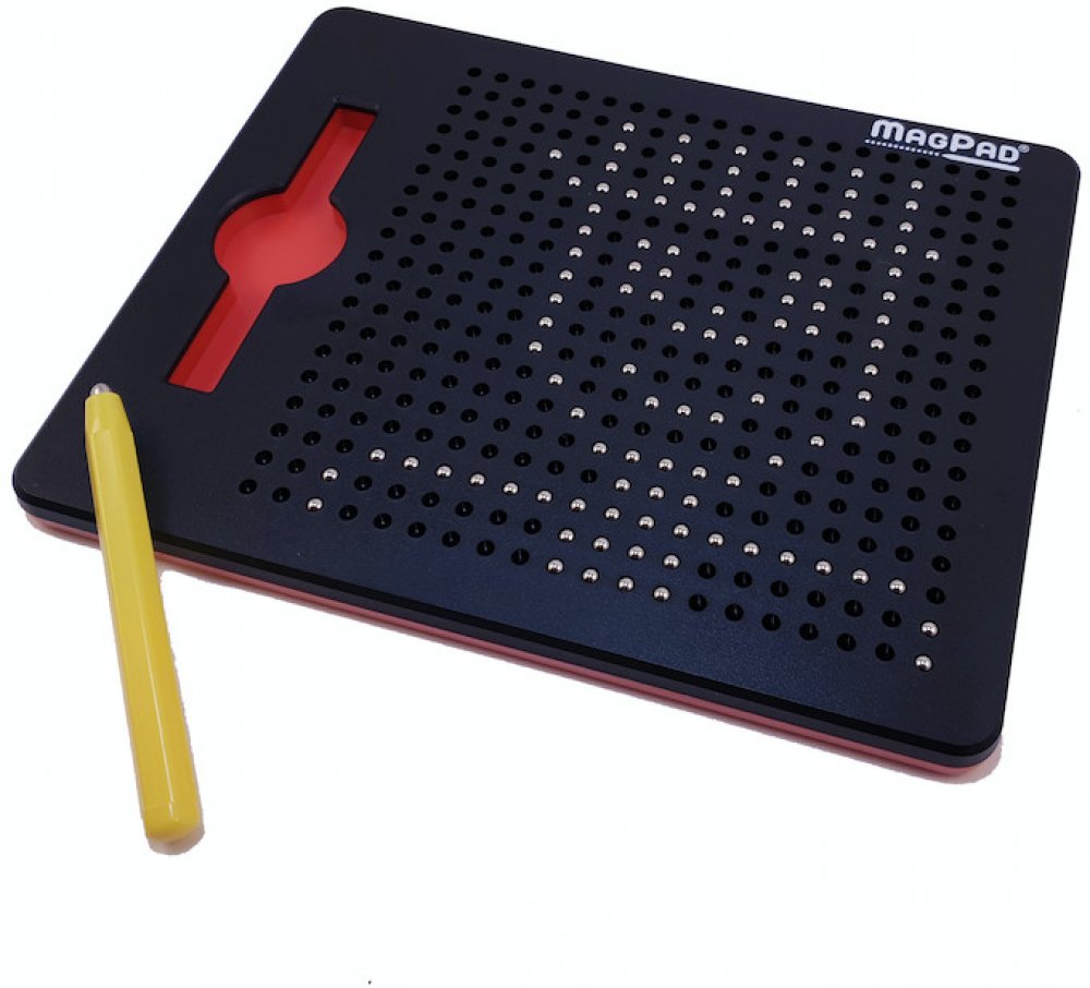 Magnetická kreslící tabulka Magpad je skvělým pomocníkem při kreslení, které nemá hranice! Použitím představivosti může dítě kreslit tvary, písmena a obrázky. Magnetickou tabulku stačí použít místo papíru a pero místo obyčejné tužky, kreslení je tak mnohem zábavnější! Díky působicí síle mezi magnety dítě cítí a slyší, jak vyskakují magnetické kuličky směrem k tužce, a tím se vytváří požadovaný tah...