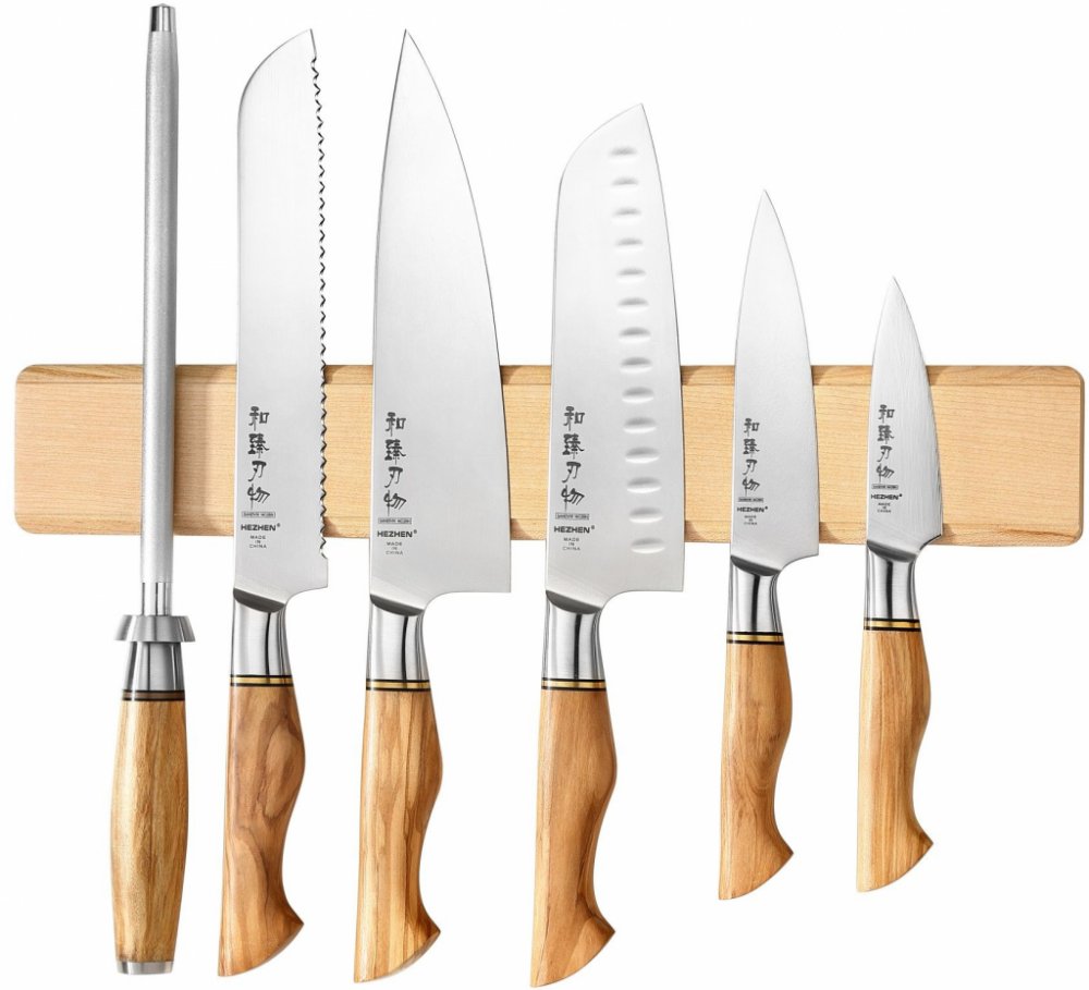 Přichycené nože na magnetické liště naplno ukazují krásu zpracování čepele. Ideální pro kuchyňské nože s gravírováním, aby byl vygravírovaný text pořád na očích.