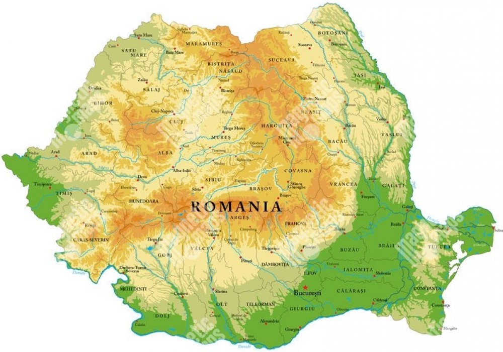 Magnetická mapa Rumunska, geografická, barevná (pozinkovaný plech) 92 x 67 cm