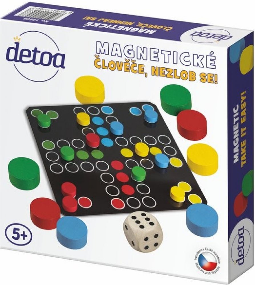 Magnetické člověče, nezlob se! - Hry (14608) Magnetické Člověče, nezlob se! je známá desková hra pro děti i dospělé. Obsahuje 12 magnetických dřevěných žetonků o průměru 15 mm, hrací kostku o rozměrech 16 mm a herní plán.Výrobek splňuje požadavky EU na bezpečnost hraček a je vhodný pro děti od 3 let.Baleno v papírové krabici o rozměrech 200x200x37 mm. z kategorie Hry | Stolní hry | Deskové hry od ...