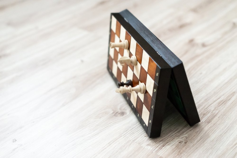 Dřevěná magnetická šachová souprava vhodná i na cestování.