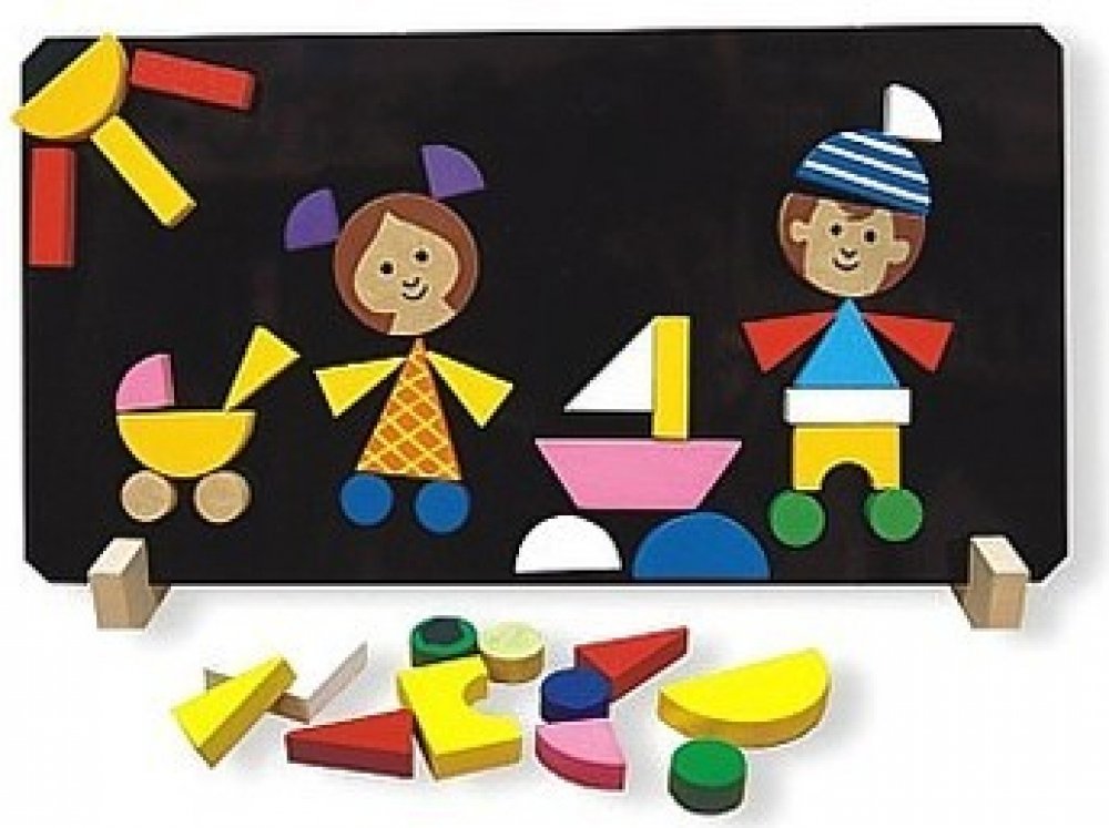 Puzzle děti obsahují magnetickou tabulku, stojánek a 40 dřevěných dílků s magnetem, z nichž lze sestavit různé obrázky. Pomáhá rozvíjet jemnou motoriku a představivost. Baleno v krabici z tvrdého papíru. Nevhodné pro děti do 3 let. Obsahuje malé části.