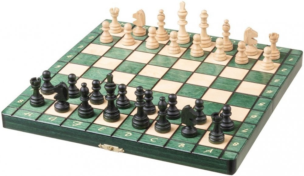 Magnetické dřevěné šachy v zelené barvě. velikost šachovnice 28 x 28 cm, výška krále 6 cm. Úložný prostor a organizér pro figurky uvnitř. Klasický Staunton styl figurek, vhodné na hru a na cesty.
