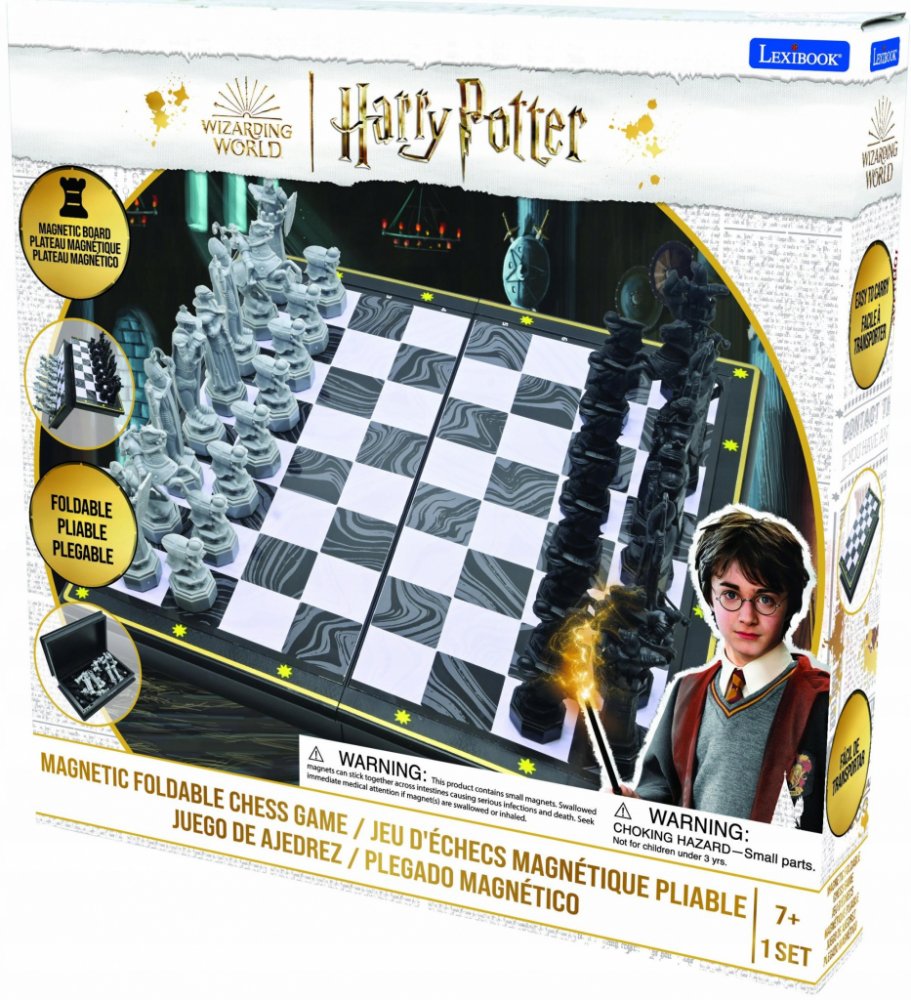 Není tajemstvím, že děti zbožňují Harryho Pottera! Vezměte je na vzrušující dobrodružství do světa čar a kouzel plného fantazie, záhad a zázraků po boku jejich oblíbených postav, jako jsou Harry, Hermiona, Ron a mnoho dalších! Nechte své děti uniknout realitě a prozkoumat jejich představivost, podnítit jejich kreativitu a odhalit magii dřímající v jejich nitru! Už jste si sbalili své kouzelnické klobouky a kouzelné hůlky? Je čas! „Další zastávka: Bradavice!“ Skládací cestovní šachy můžete vzít s sebou na dovolenou a pokračovat v rozehrané partii i během cestování. Herní desku lze jednoduše složit a 32 figurek pohodlně uložit dovnitř do plastového zásobníku, což dělá tuto hru ideální pro hraní kdykoliv a kdekoli, například během cestování v autobuse, vlaku nebo autě. Díky silnému magnetu se každá figurka snadno přichytí k magnetické hrací ploše. Vynikající přilnavost dovolí zachovat pozice všech hracích figurek v případě nečekaného pohybu nebo nutnosti hrací desku přesunout. Nikdy tak neztratíte průběh hry! Provedení hry je velmi kompaktní, s rozměry složené hrací desky 33 x 7 x 16 cm a rozložené desky 33 x 23,7 x 33 cm je tato hra skvělou volbou pro všechny milovníky šachů. Hraní šachů je prospěšné pro zlepšení kritického myšlení, strategického plánování a paměťových schopností, zároveň poskytuje společenský a soutěživý prvek pro jedince všech věkových skupin. Nabízí poutavou kombinaci intelektuální výzvy, odpočinku a příležitost ke komunikaci s ostatními prostřednictvím hraní her. Klíčové vlastnosti Cestovní skládací šachy Harry Potter s personalizovanými figurkami z filmu Magnetická herní plocha, která dokáže zachovat pozice hracích figurek Silný magnet Ideální během cestování Neztratíte průběh hry kvůli nečekanému pohybu hrací desky Podporuje rozvoj kritického myšlení, strategického plánování a paměťových schopností Zábavná hra pro všechny věkové kategorie formou intelektuální výzvy 32 plastových figurek Plastový zásobník pro uschování všech figurek Kompaktní velikost praktická na přenášení Pro 2 hráče Rozměry rozložené hry 33 x 23,7 x 33 cm Rozměry složené hry 33 x 7 x 16 cm Vhodné pro děti od 7 let.
