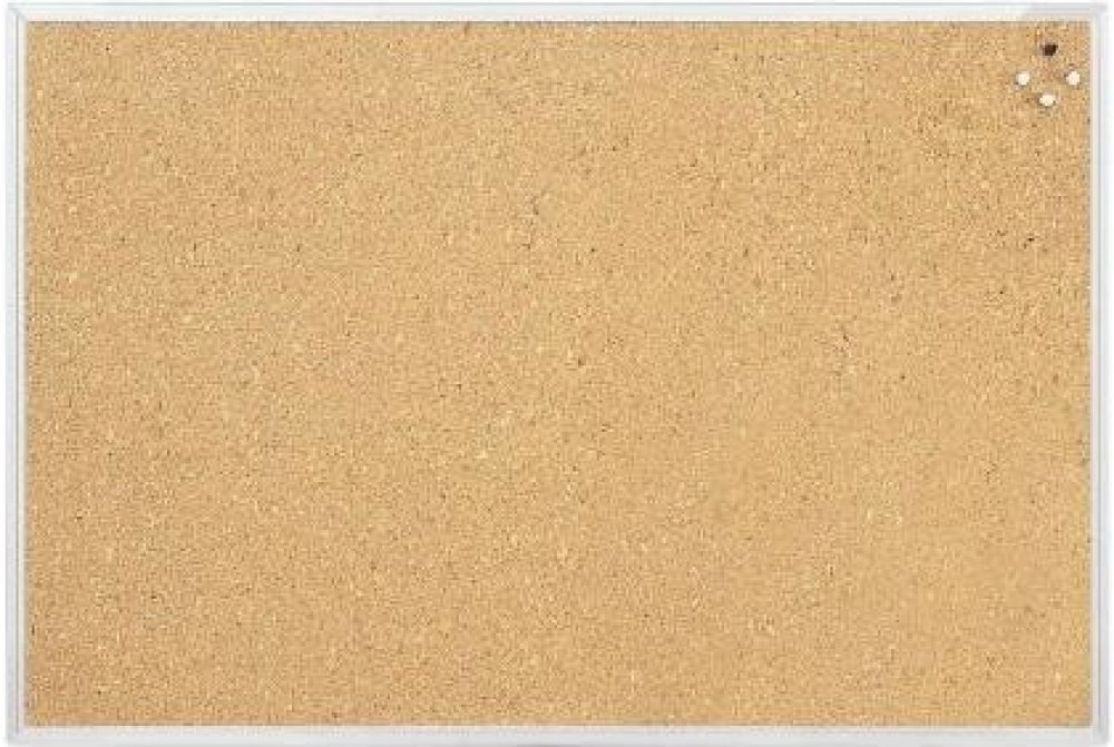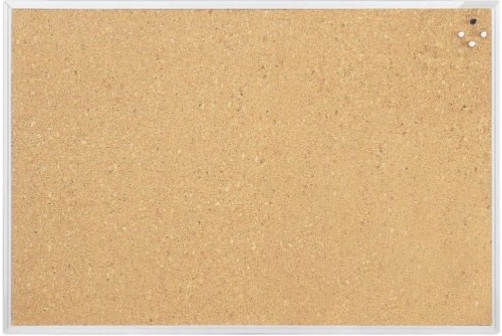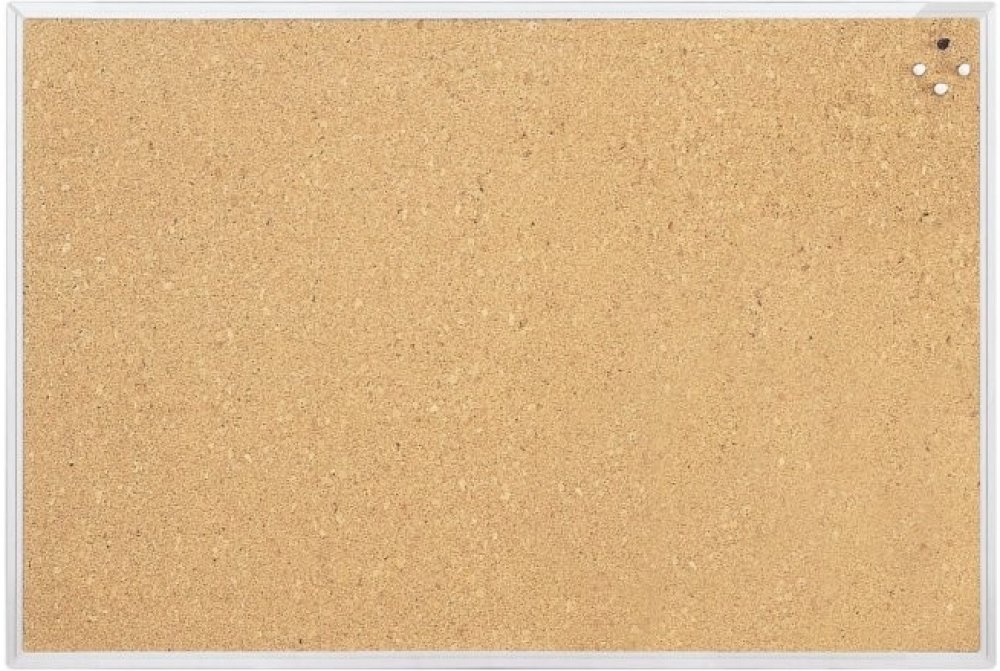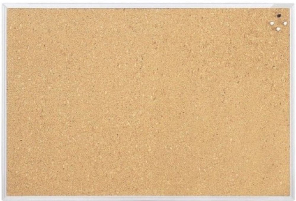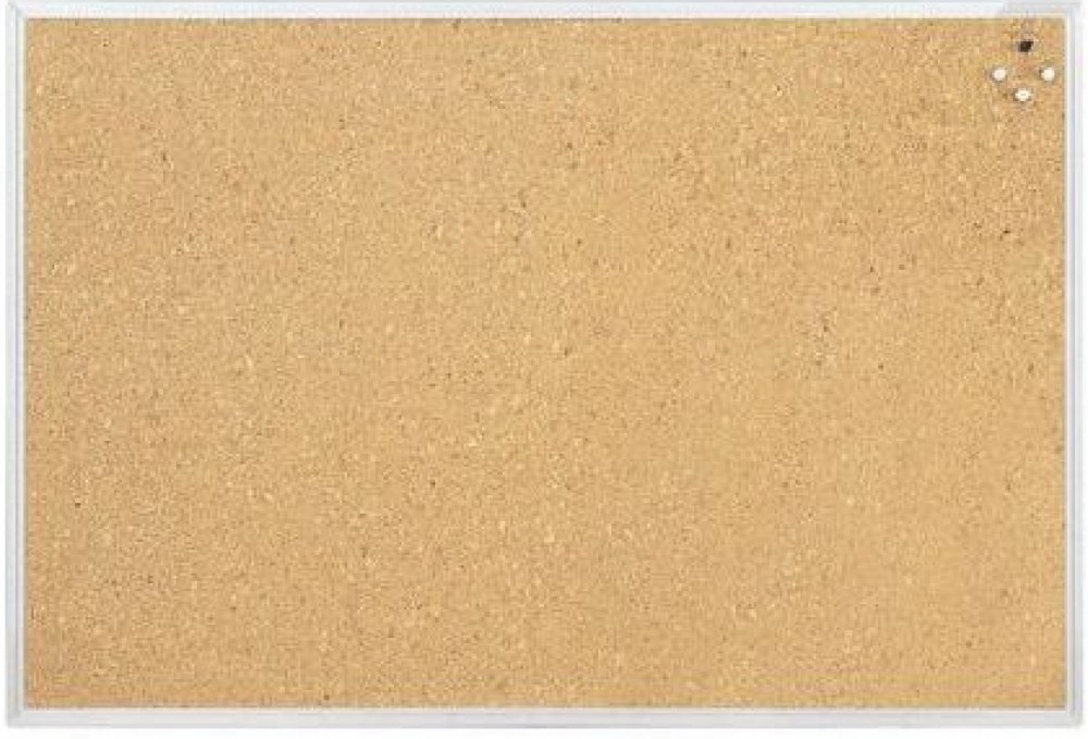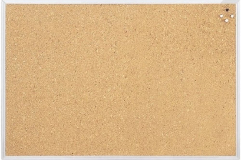 Korková tabule v hliníkovém eloxovaném rámu. Montáž na šířku i na výšku. Zaoblené rohy, kovová zadní strana, včetně montážního materiálu. Rozměr 90×60 cm.