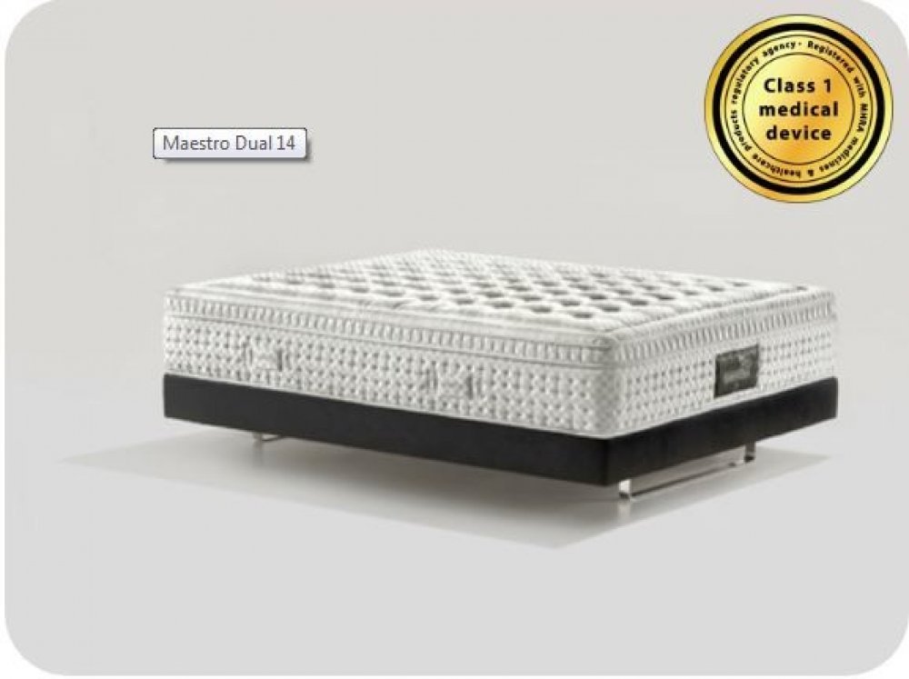 Zdravotní matrace Maestro Dual 14 je exkluzivní matrace pro Vaši dokonalou spánkovou regeneraci. Jádro matrace je složeno z kombinace vrstev patentované paměťové pěny Memoform, inovativní pěny na bázi vody Aquabreeze, speciální pěny Malva a studené pěny Elioform.